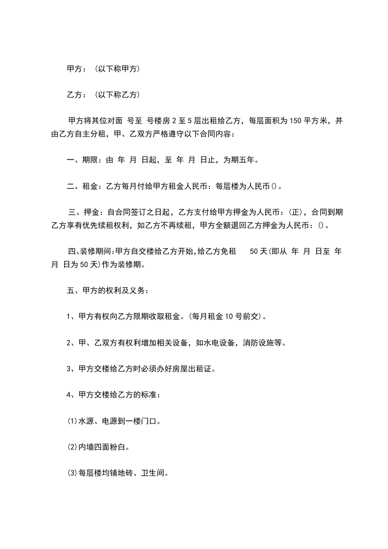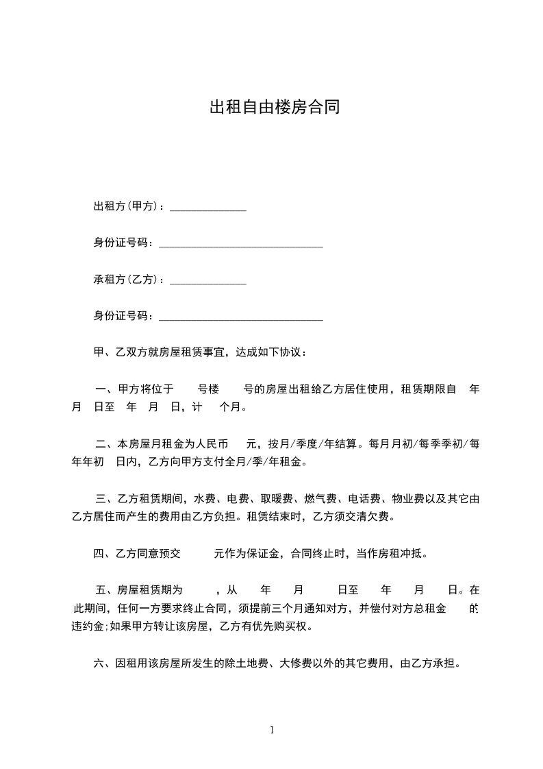 五、房屋租赁期为 ,从年月 日至_____年_____月_____日。在此期间,任何一方要求终止合同,须提前三个月通知对方,并偿付对方总租金的违约金;如果甲方转让该房屋,乙方有优先购买权。