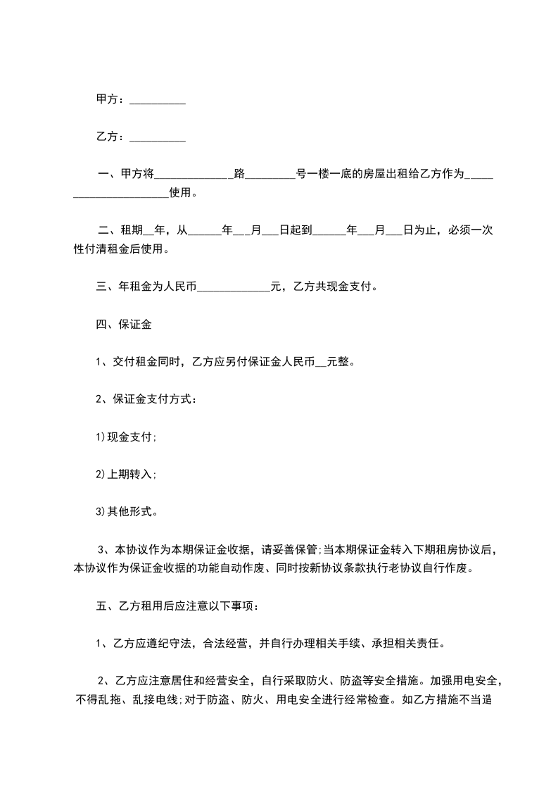 四、乙方同意预交 元作为保证金,合同终止时,当作房租冲抵。