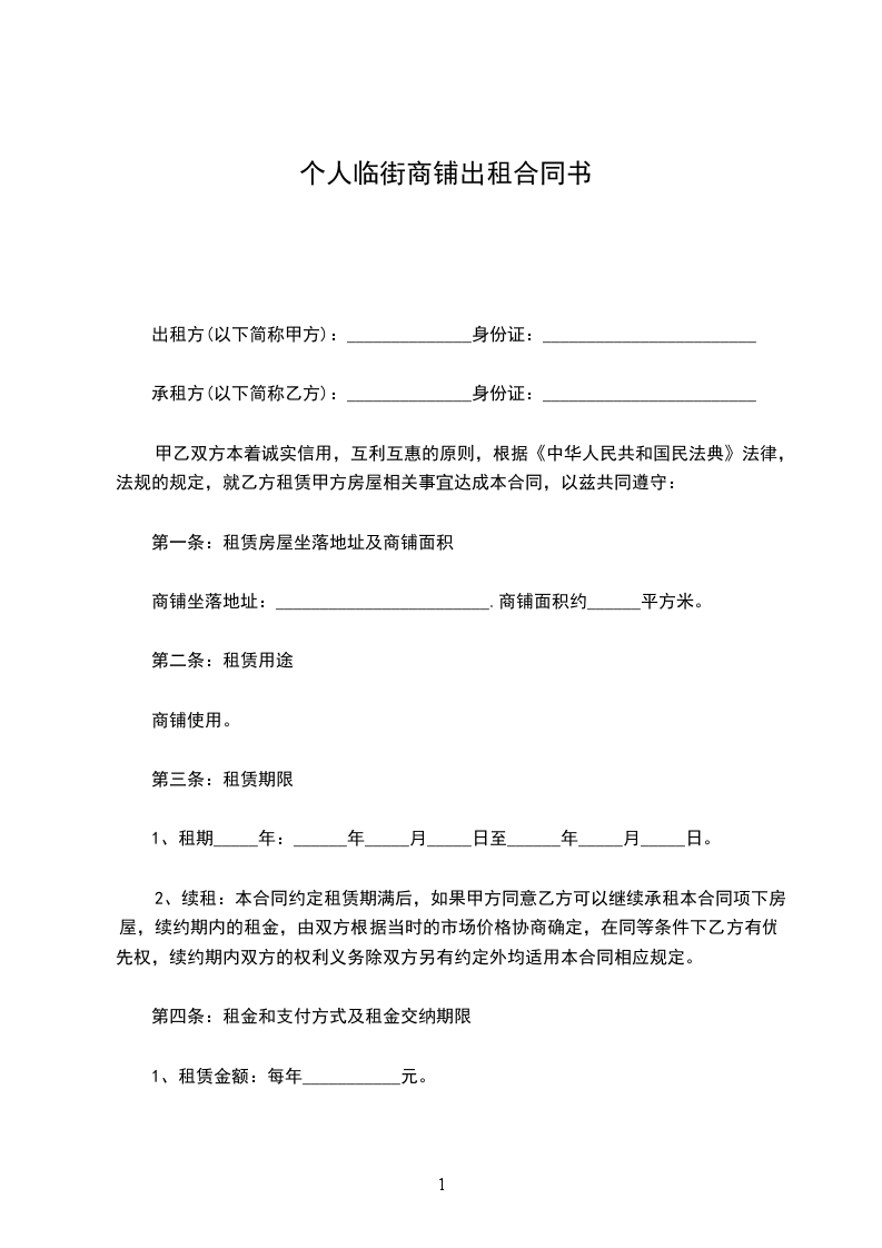 甲方出租的商铺坐落于 街 号,建筑面积 平方米。