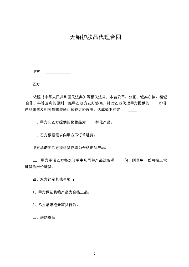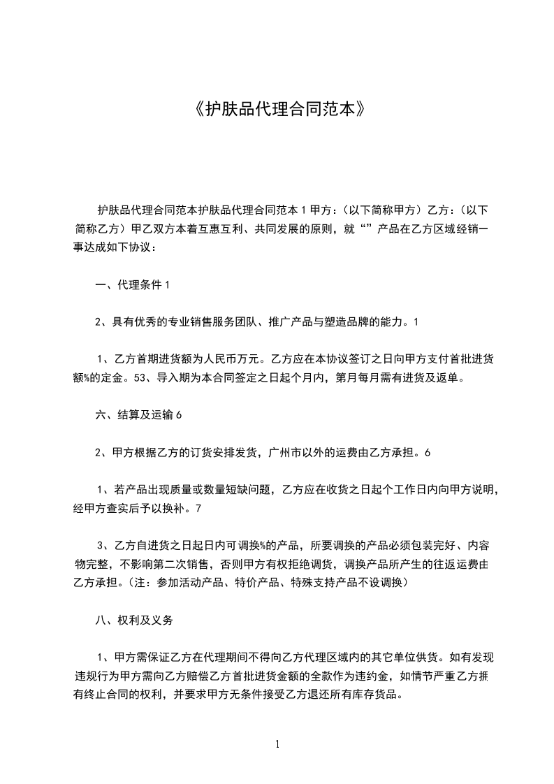 1、承诺并保证作为产品的中国总代理完全有资格与乙方签订本协议。