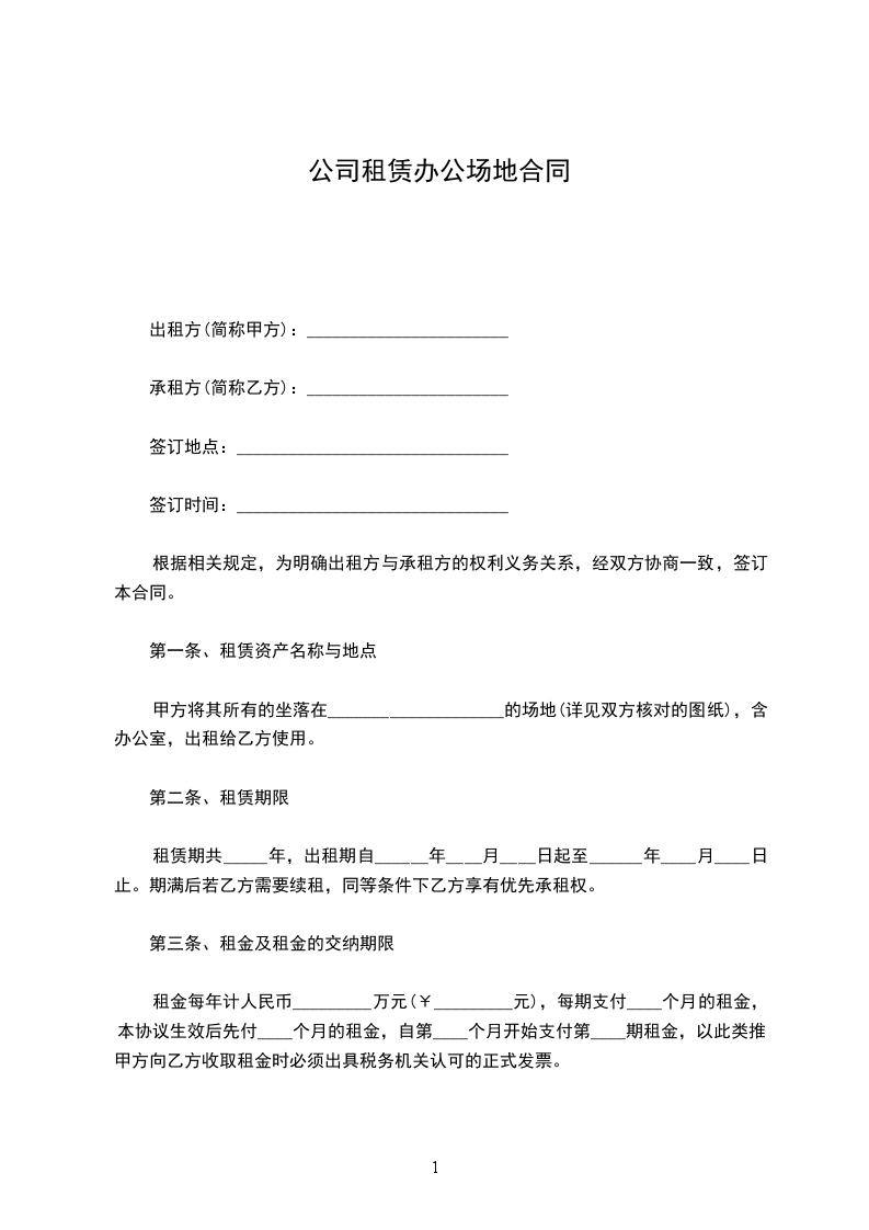 2.1租赁期限:年。自_____年_____月_____日起至_____年_____月_____日止。(甲方允许乙方提前进驻装修,时间为_____年_____月_____日至_____年_____月_____日,该期间不收取租金。)