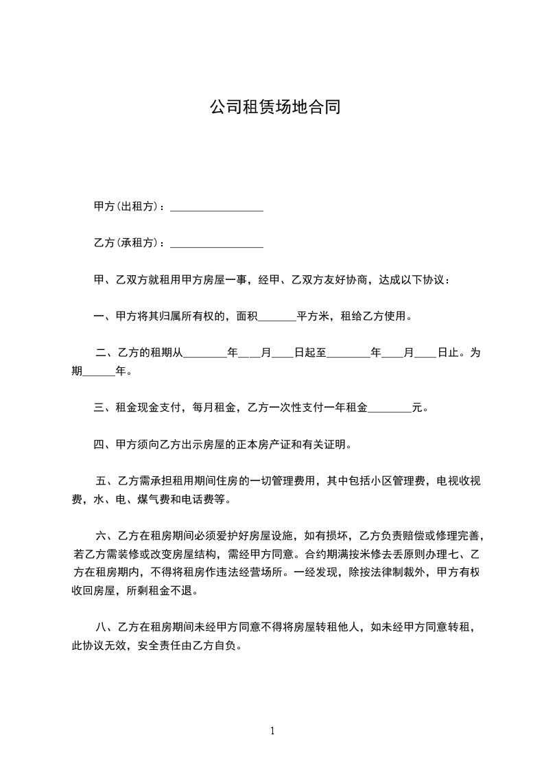 1.2上款所称房屋是指由甲方出租给乙方使用的场地、房屋及其配套设施。