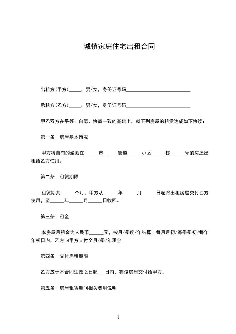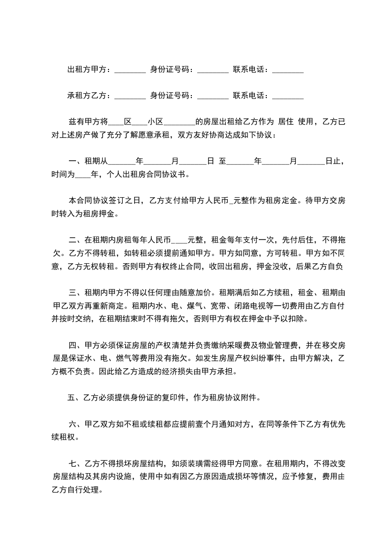 出租方(甲方)_____,男/女,身份证号码___________________________
