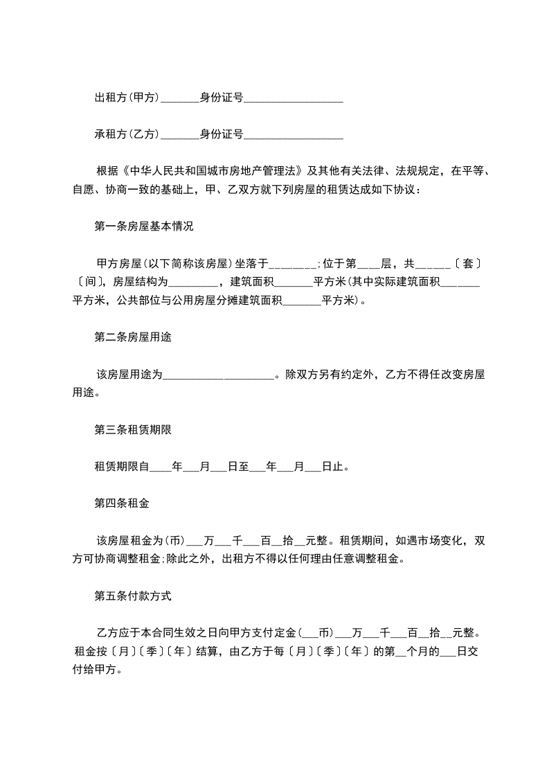承租方(乙方)_____,男/女,身份证号码___________________________