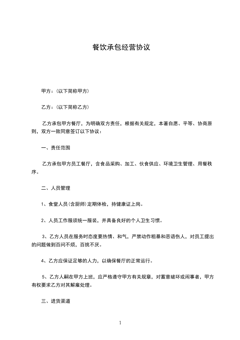 乙方承包甲方餐厅,为明确双方责任,根据有关规定,本著自愿、平等、协商原则,双方一致同意签订以下协议: