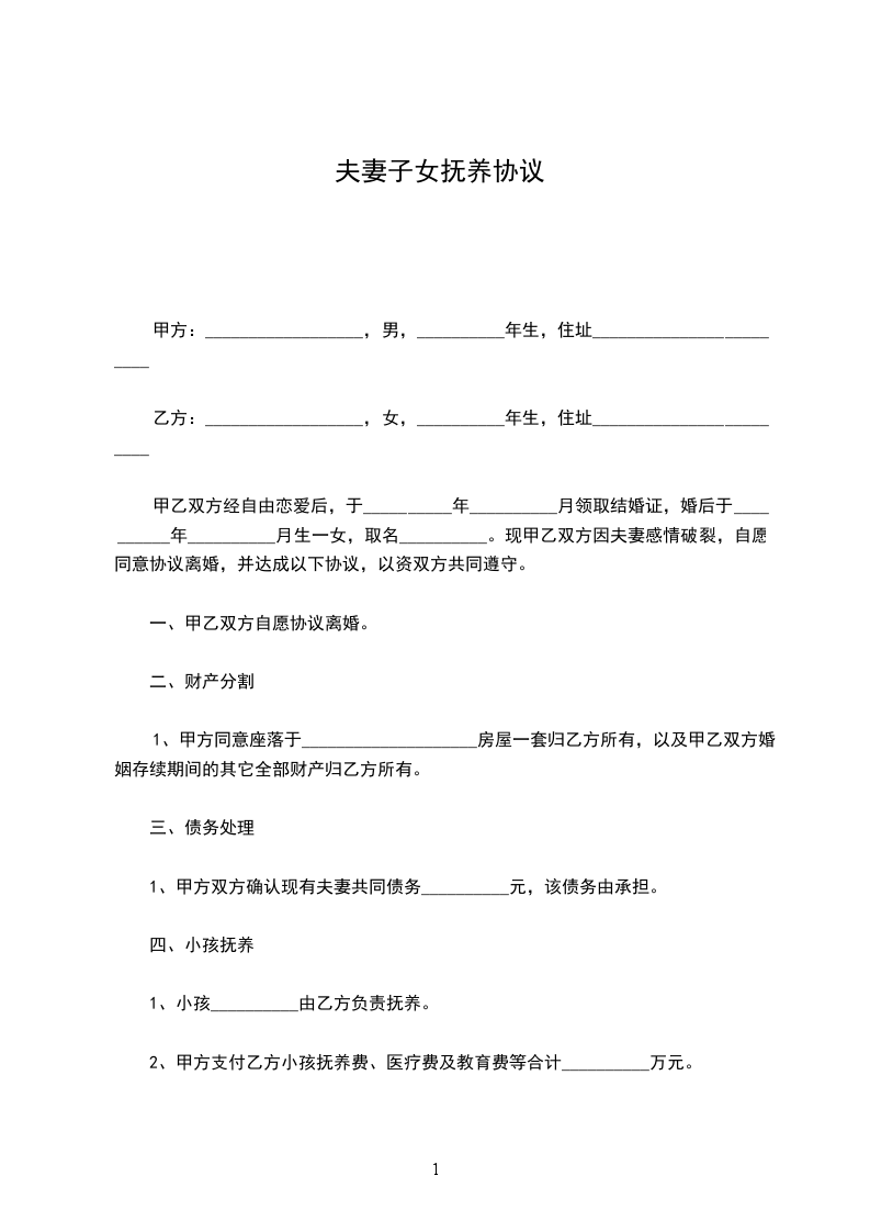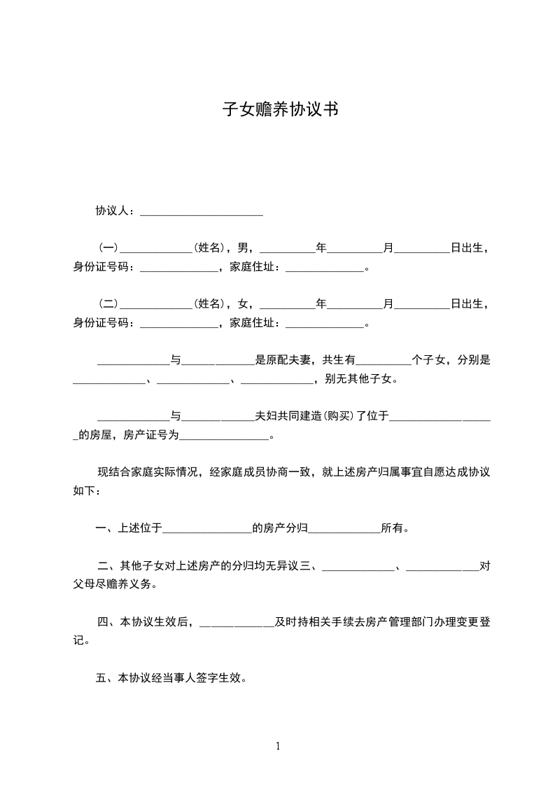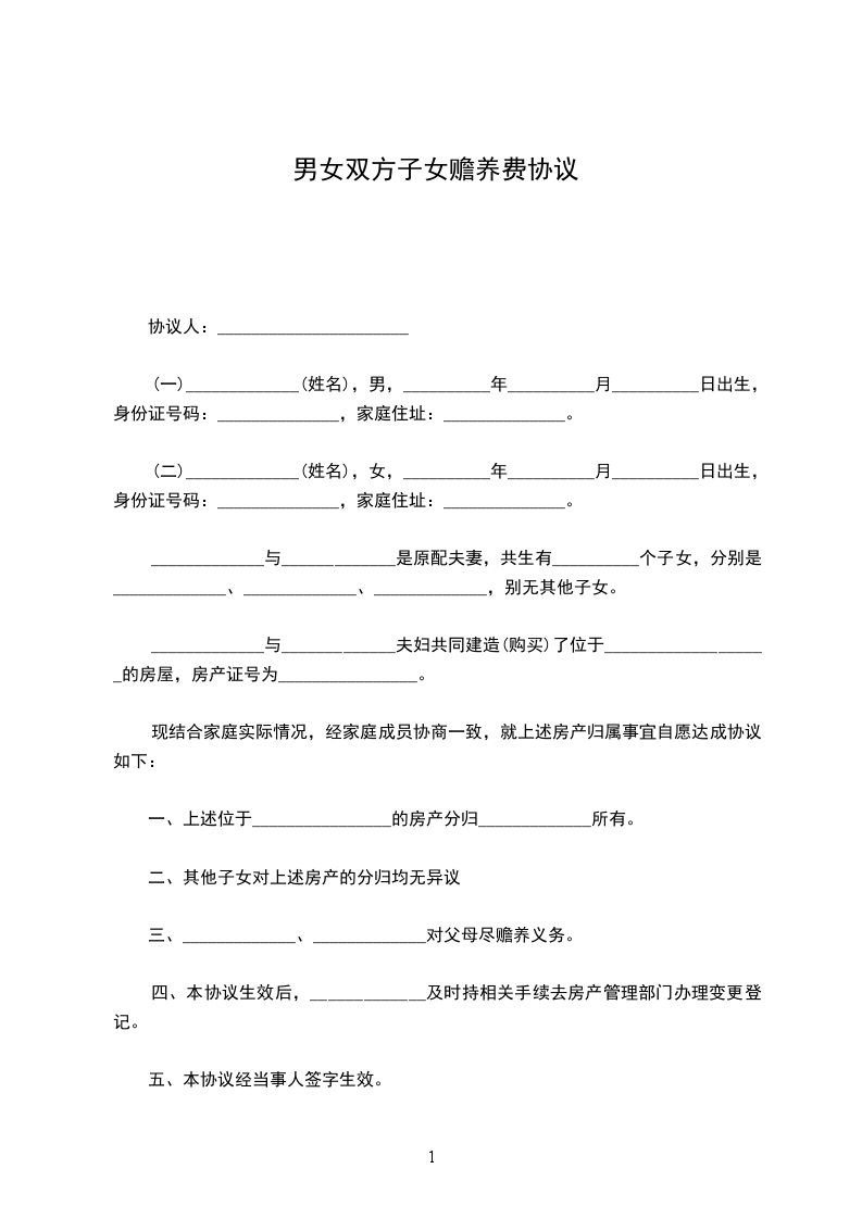 协议人:______,女,______年_____月_____日出生,_____族,住______市______路______号