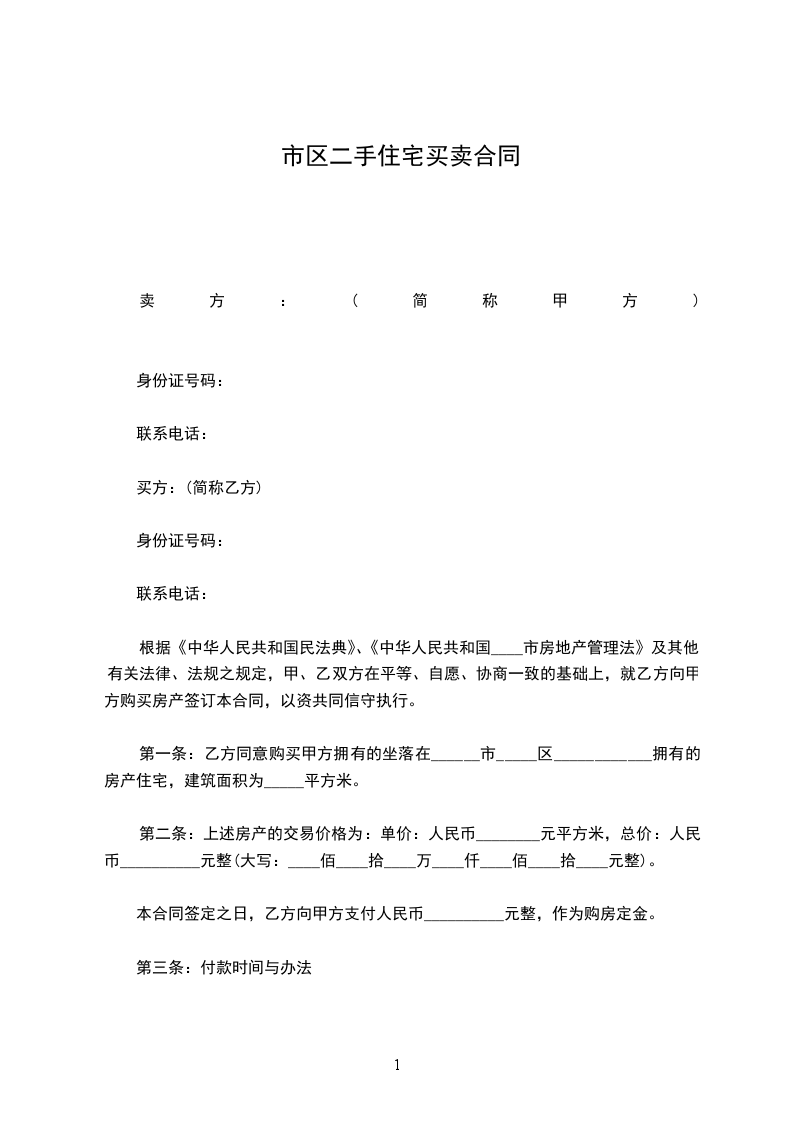 第一条乙方同意购买甲方拥有的座落在_____县_____区____拥有的房产住宅,建筑面积为____平方米。(详见土地房屋权证第____号)。
