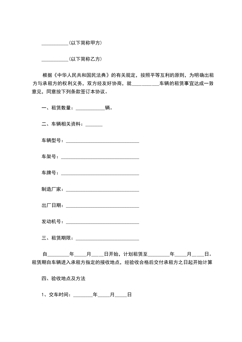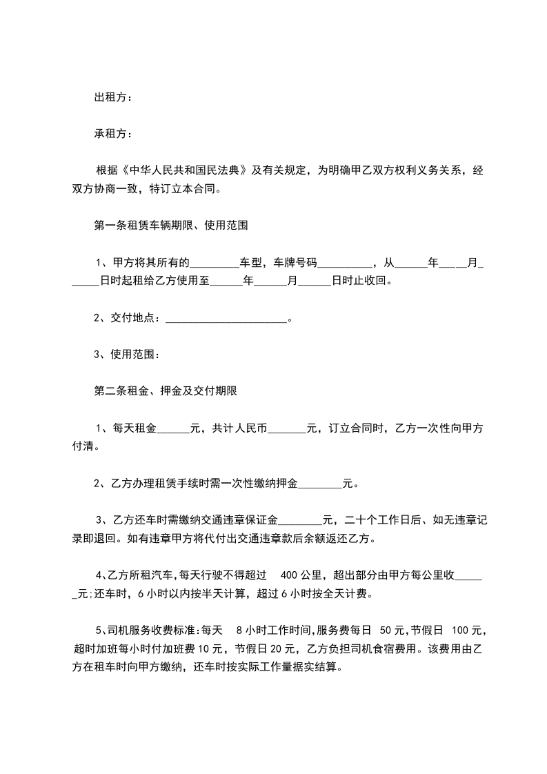 二、租车费用:每月____元整,同时,车辆使用发生的汽油费、停车费、过路过桥费、洗车费、维修费等车辆发生的一切费用由甲方承担。