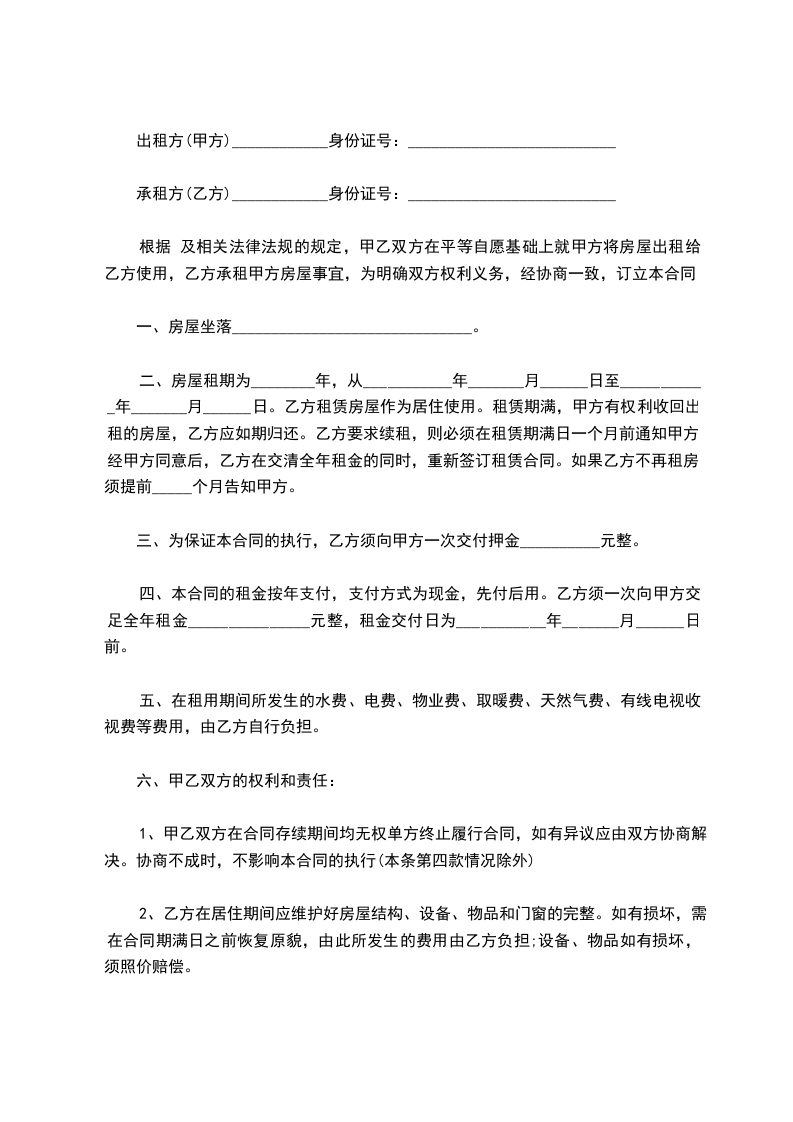 1.房租费为___元/月,租期从________年____月____日到________年____月____日。甲方一次性向乙方收取半年房租,即___元/月____月=____元到期后双方再另行协议续租事宜。