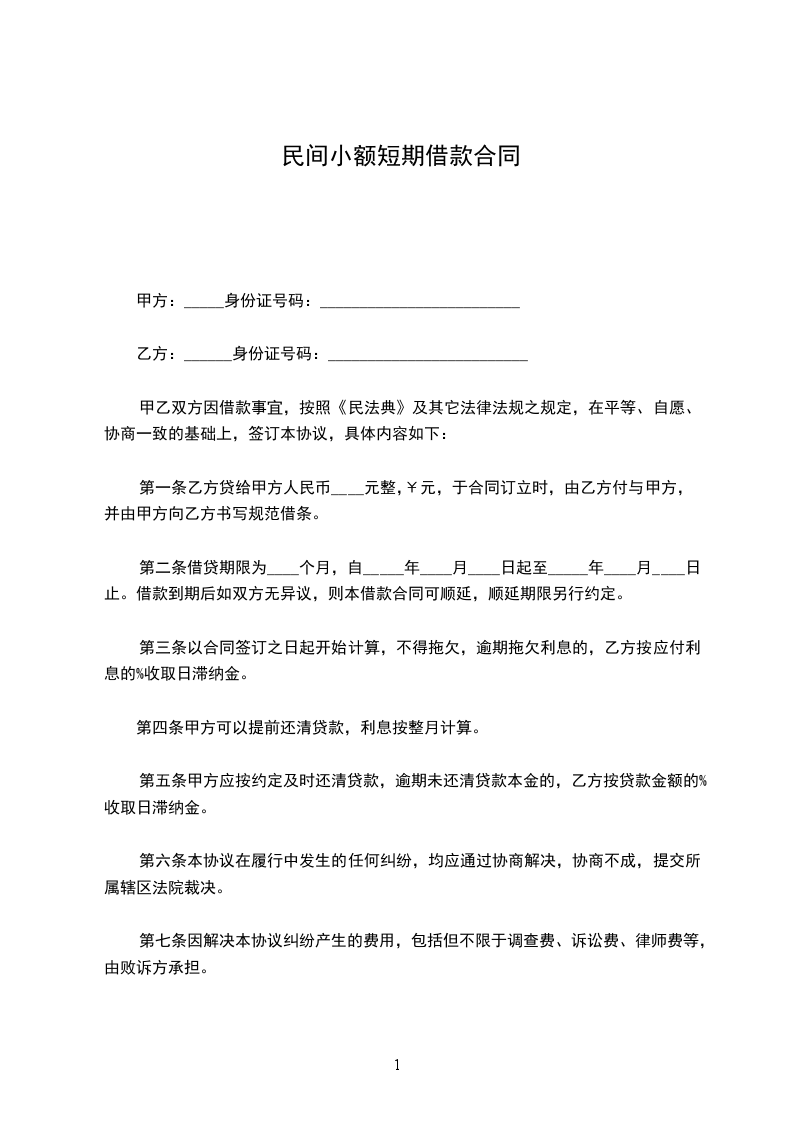 第一条乙方贷给甲方人民币____元整,¥元,于合同订立时,由乙方付与甲方,并由甲方向乙方书写规范借条。
