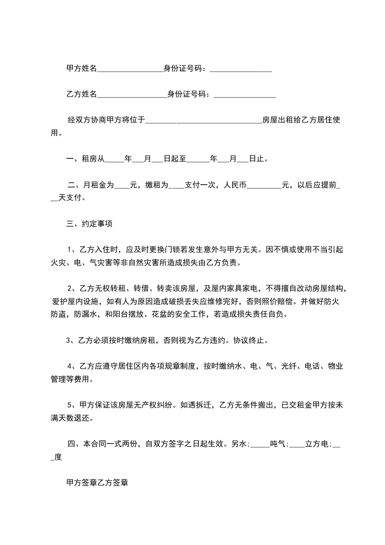 经双方协商甲方将位于______________________________房屋出租给乙方居住使用。