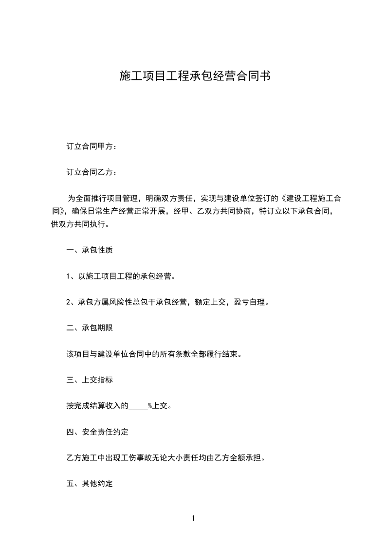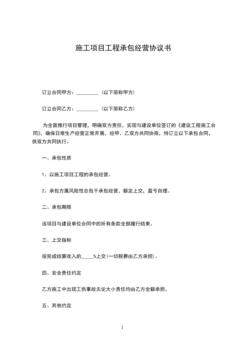 为全面推行项目管理,明确双方责任,实现与建设单位签订的《建设工程施工合同》,确保日常生产经营正常开展,经甲、乙双方共同协商,特订立以下承包合同,供双方共同执行。