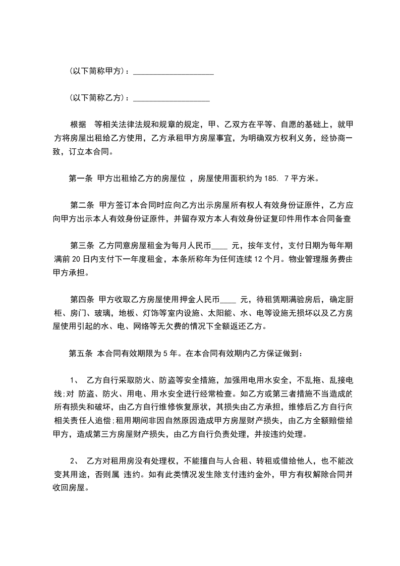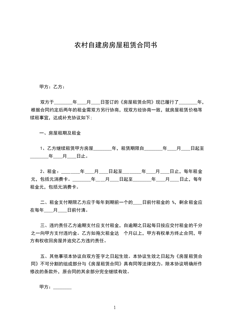 1、乙方继续租赁甲方房屋________年,租赁期限自________年____月____日起至________年____月____日止。