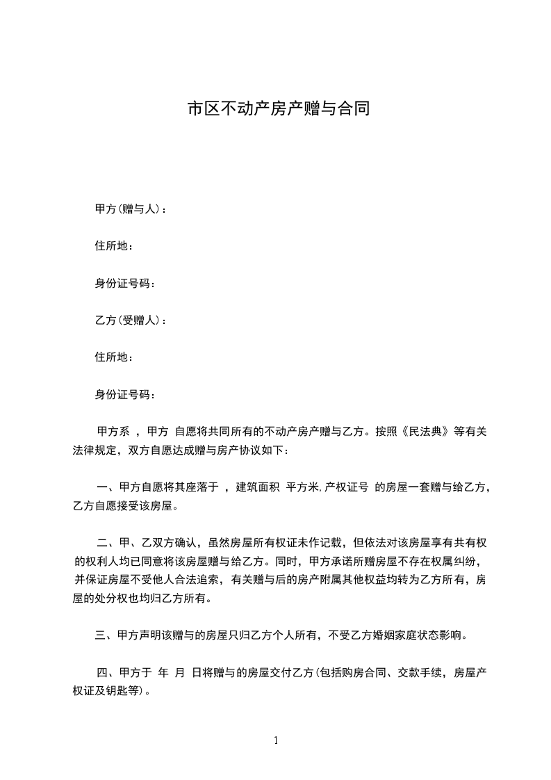 双方根据《中华人民共和国民法典》就赠与事项达成如下协议: