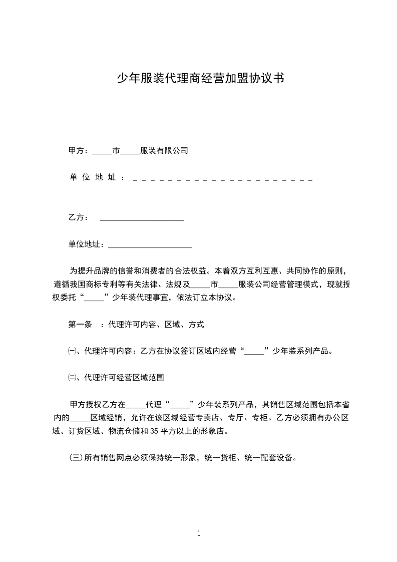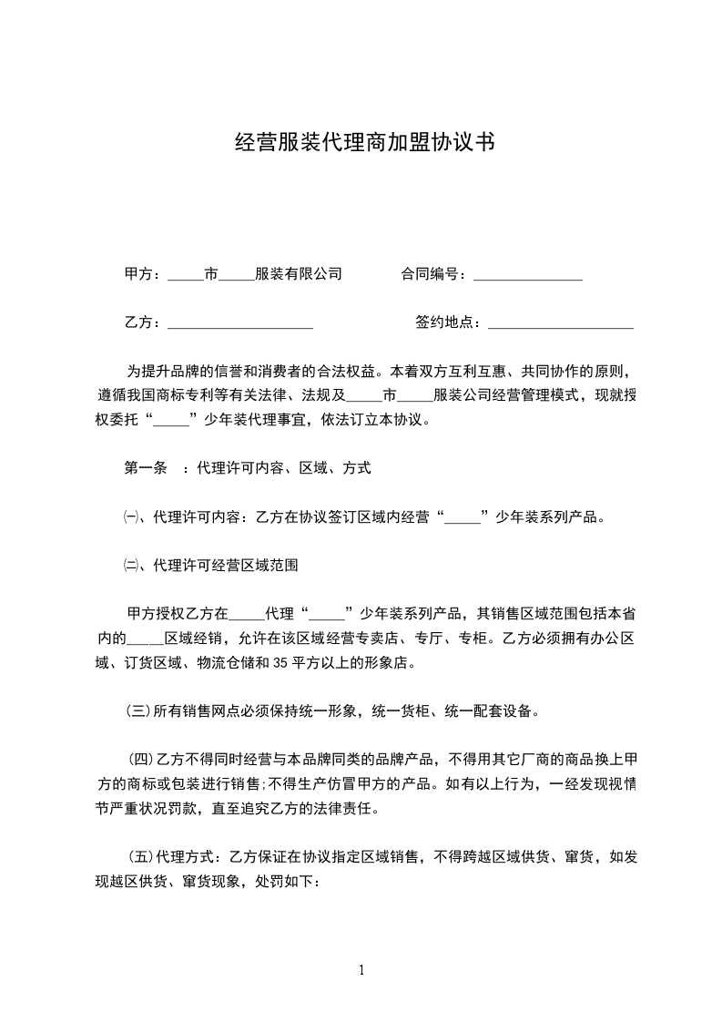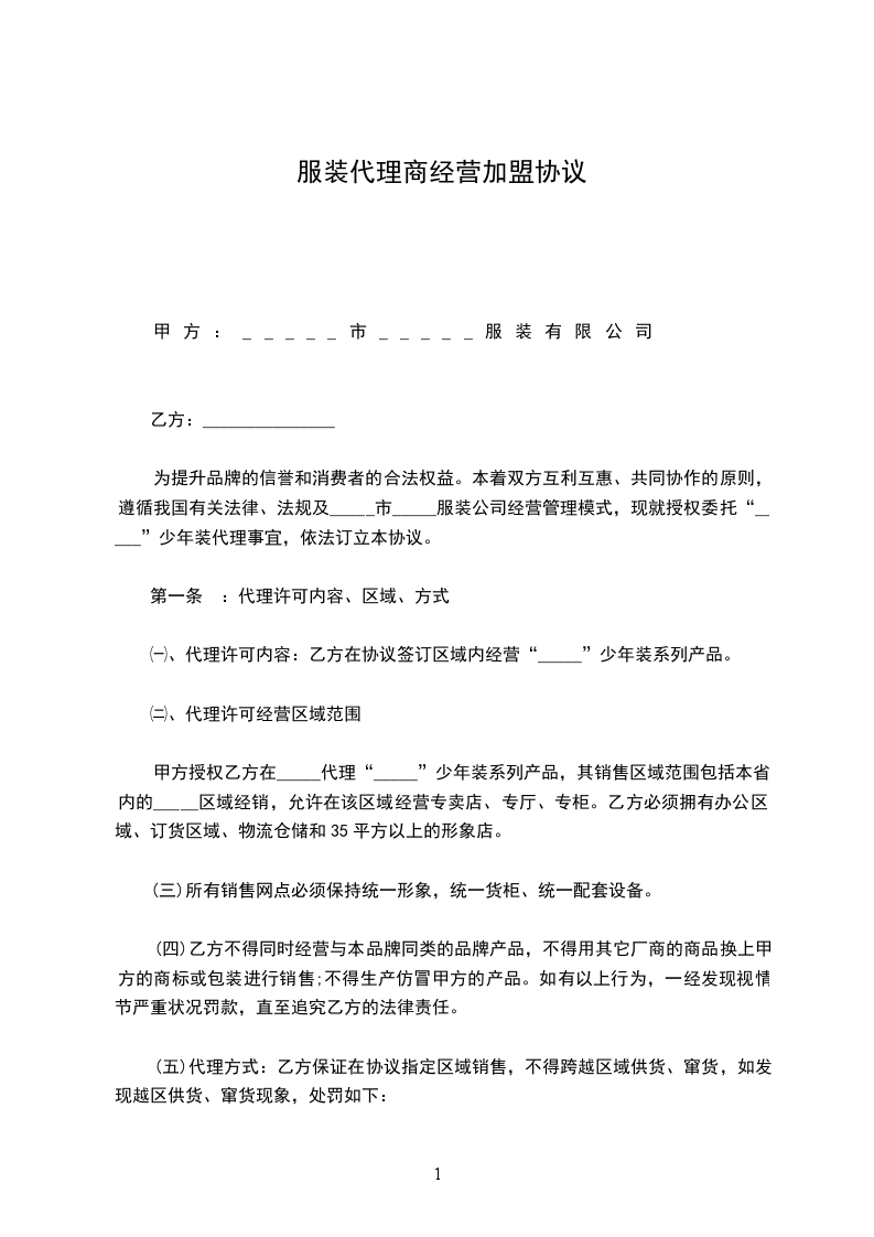 (一)代理许可内容:乙方在协议签订区域内经营“_______________”。