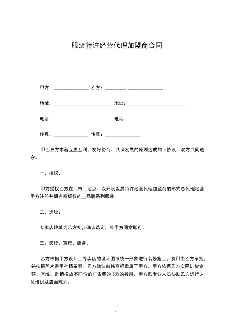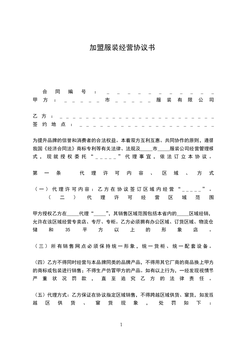 1.甲方授权乙方在规定的销售区域经销“_____”品牌专卖、专厅、专柜的产品。