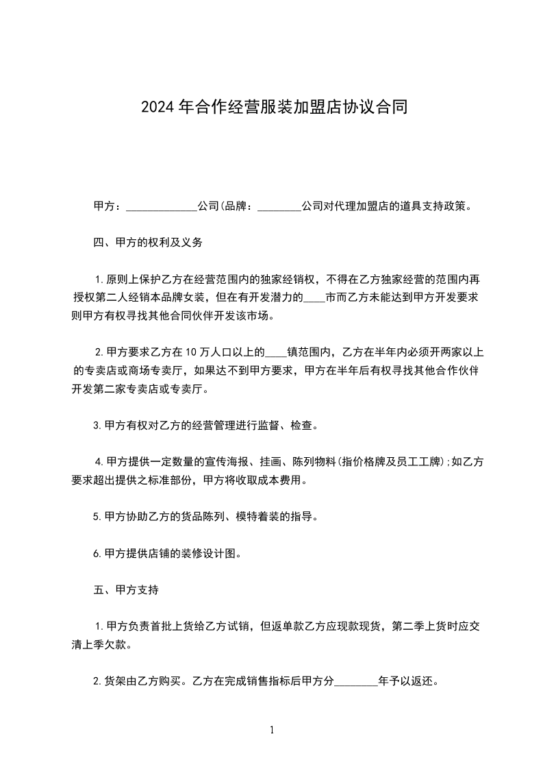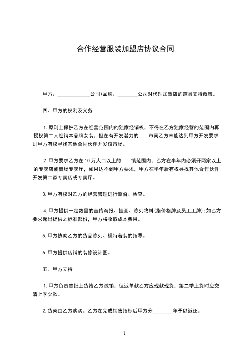 4.乙方店铺内的员工应按规定穿着统一制服,制服成本由乙方承担。