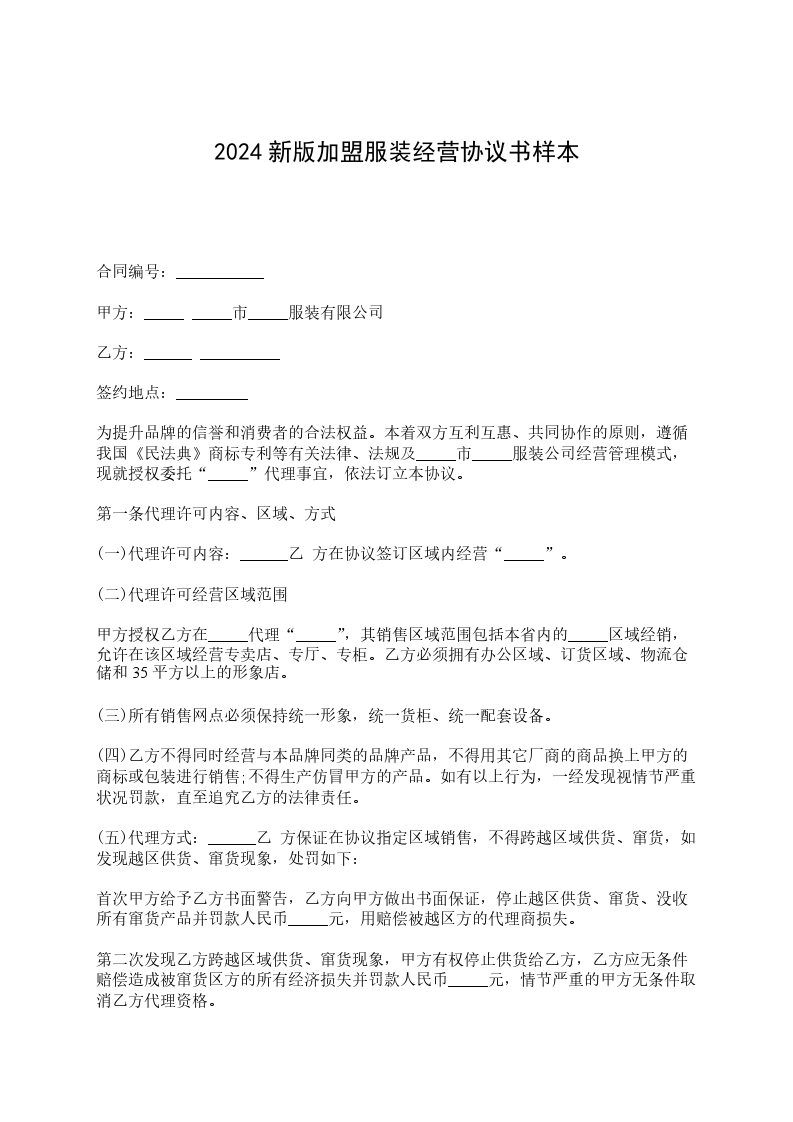 为提升品牌的信誉和消费者的合法权益。本着双方互利互惠、共同协作的原则,遵循我国《民法典》商标专利等有关法律、法规及_____市_____服装公司经营管理模式,现就授权委托“_____”代理事宜,依法订立本协议。