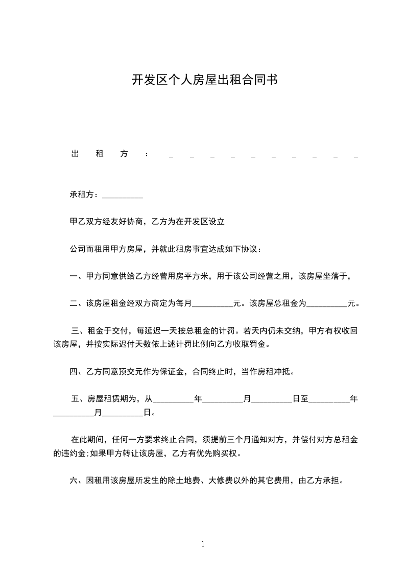 五、房屋租赁期为,从__________年__________月__________日至__________年__________月__________日。