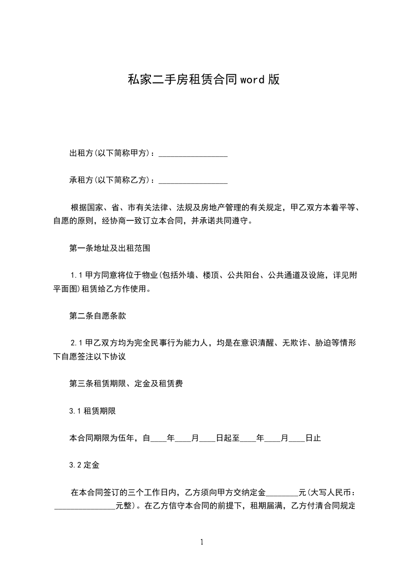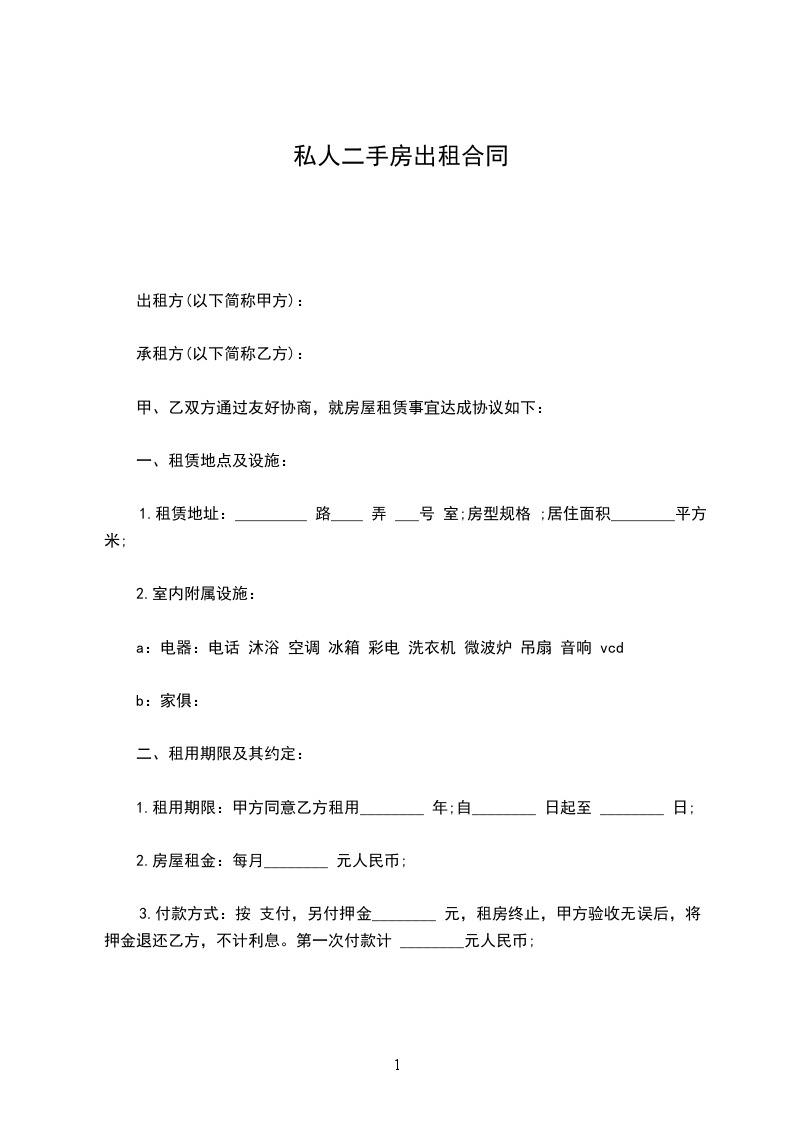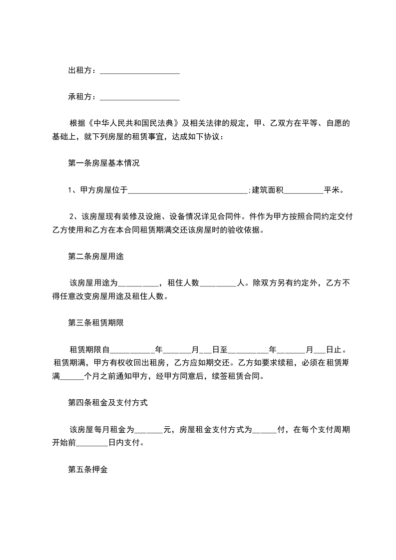 一、租房从_____年___月___日起至______年___月___日止。