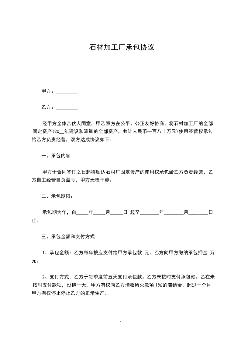1,加工厂所有的机械设备按人民币_____元整,由乙方用现金一次性买断,但乙方必须在原场地经营,不得转移场地及机械设备。