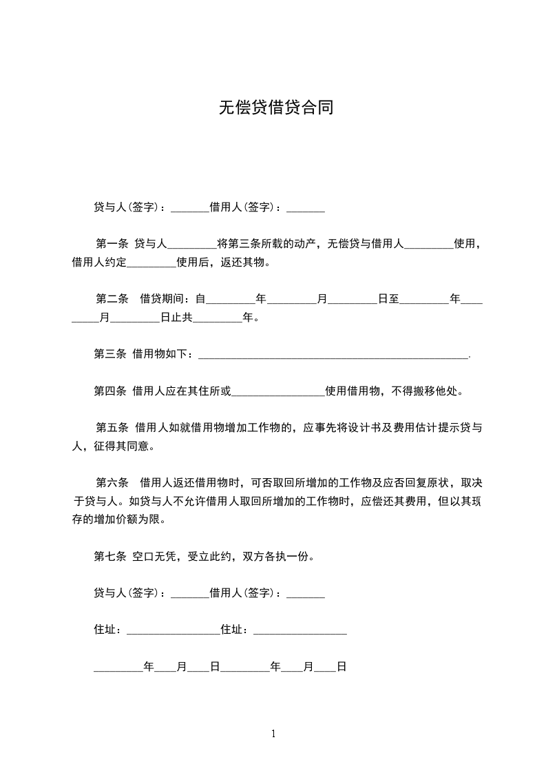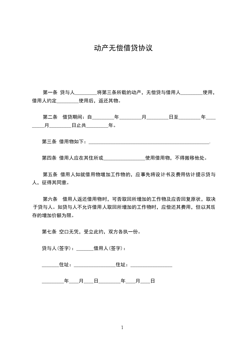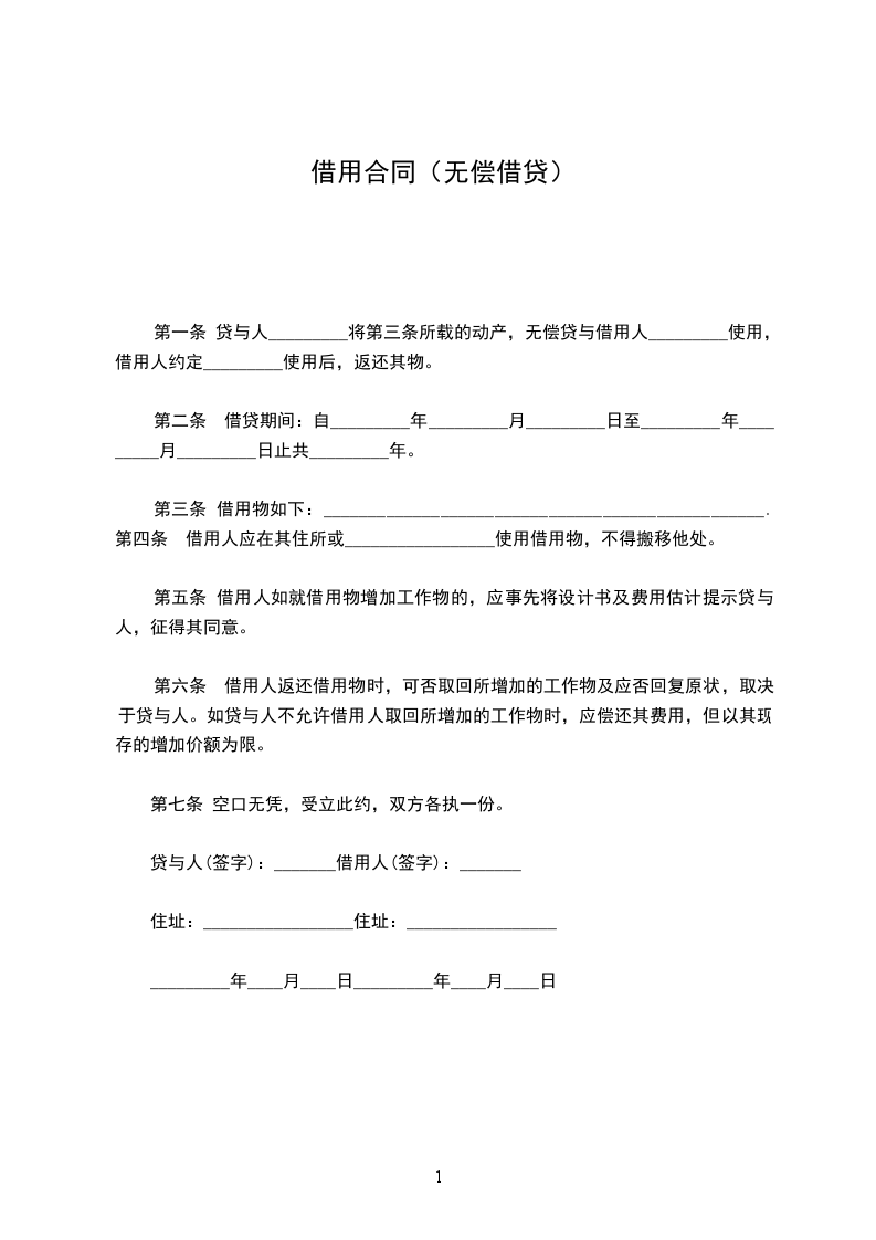 贷与人_________将第三条所载的动产,无偿贷与借用人_________使用,借用人约定_________使用后,返还其物。
