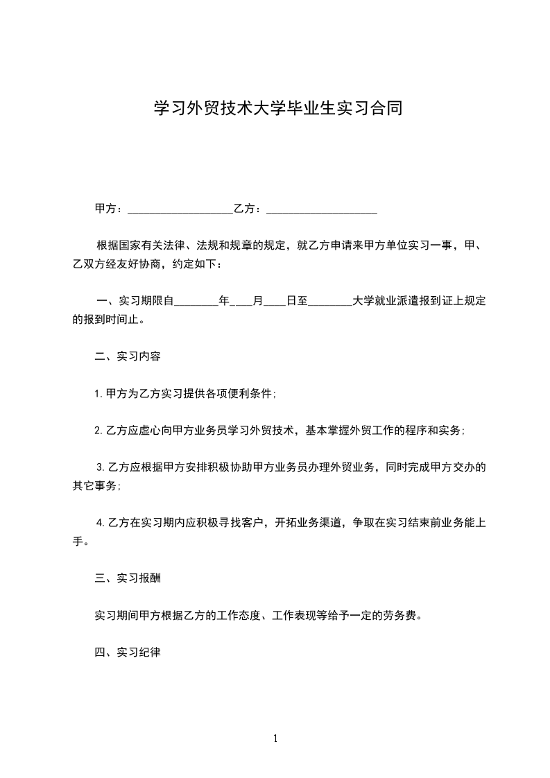 4.乙方在实习期内应积极寻找客户,开拓业务渠道,争取在实习结束前业务能上手。