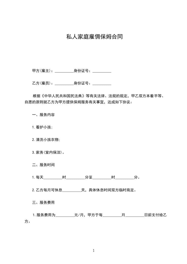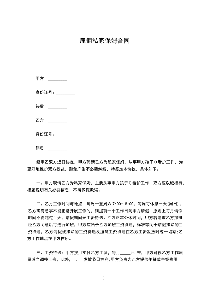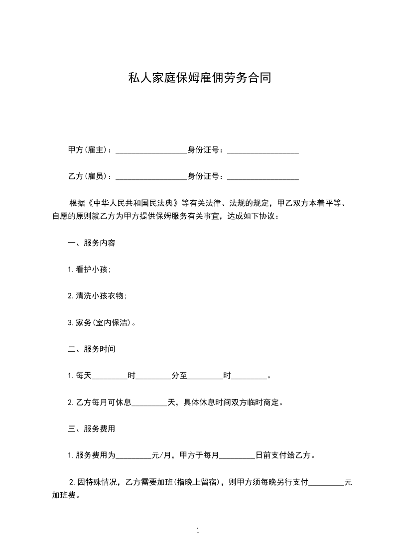 根据有关法律、法规的规定,甲乙双方本着平等、自愿的原则就乙方为甲方提供保姆服务有关事宜,达成如下协议: