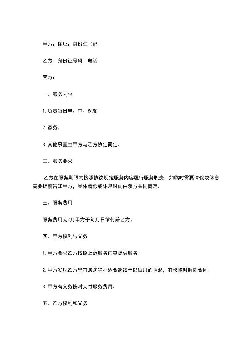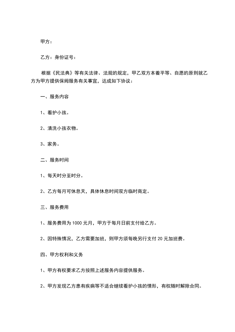 3、乙方须自觉履行上述服务项目,细心照顾小孩;