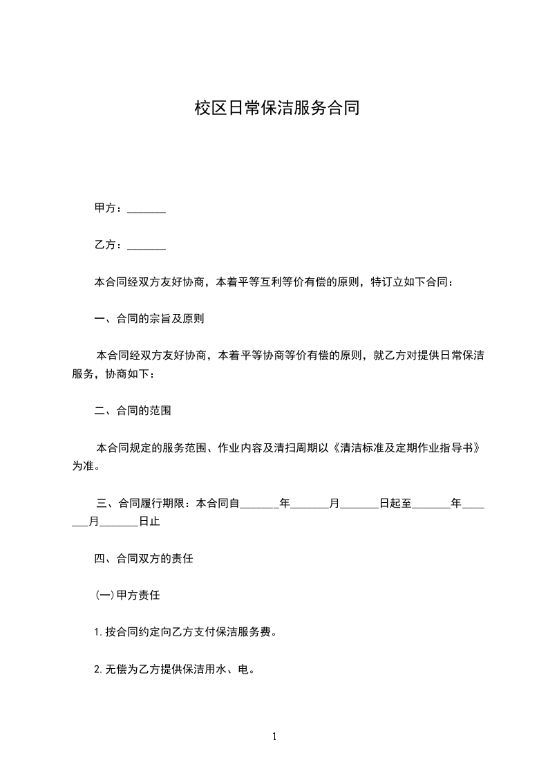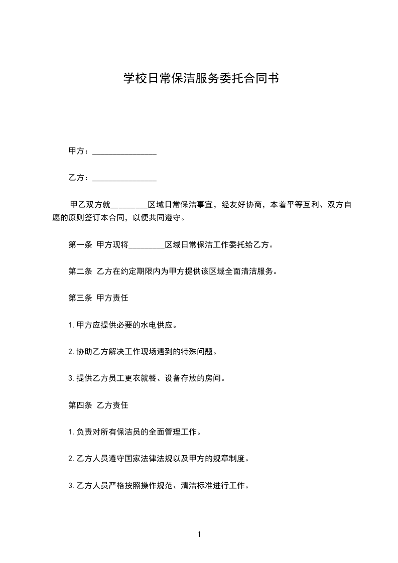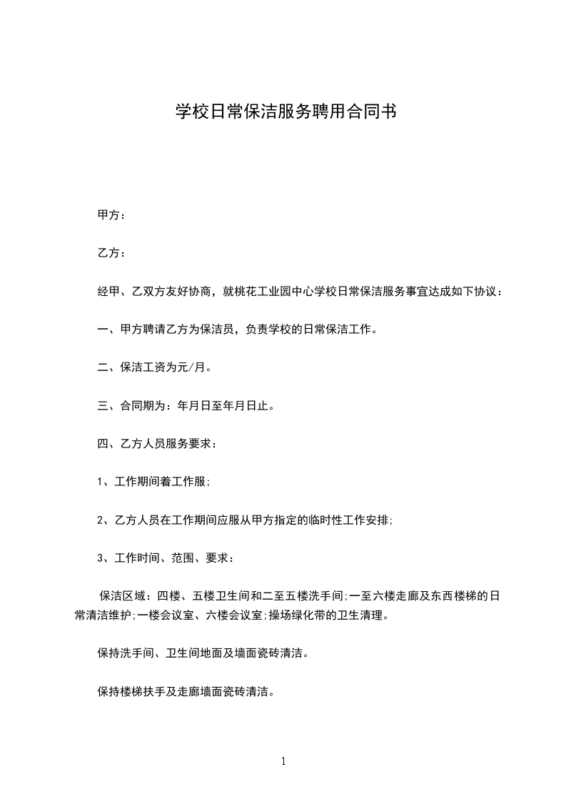 一、甲方聘请乙方为保洁员,负责学校的日常保洁工作。