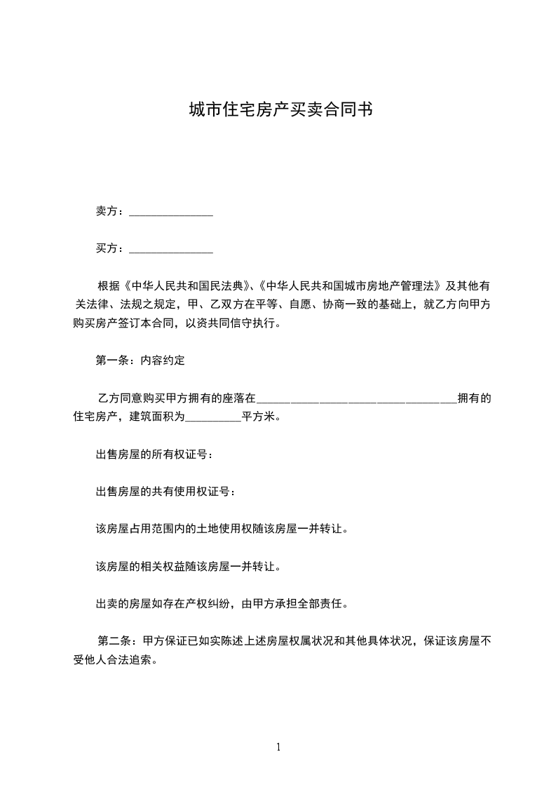根据《中华人民共和国民法典》、《中华人民共和国城市房地产管理法》及其他有关法律、法规之规定,甲、乙双方在平等、自愿、协商一致的基础上,就乙方向甲方购买房产签订本合同,以资共同信守执行。