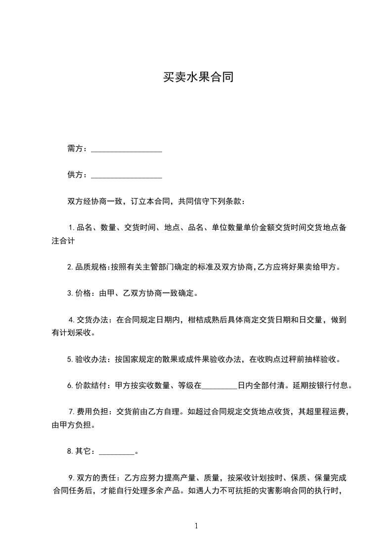 2.品质规格:按照有关主管部门确定的标准及双方协商,乙方应将好果卖给甲方。