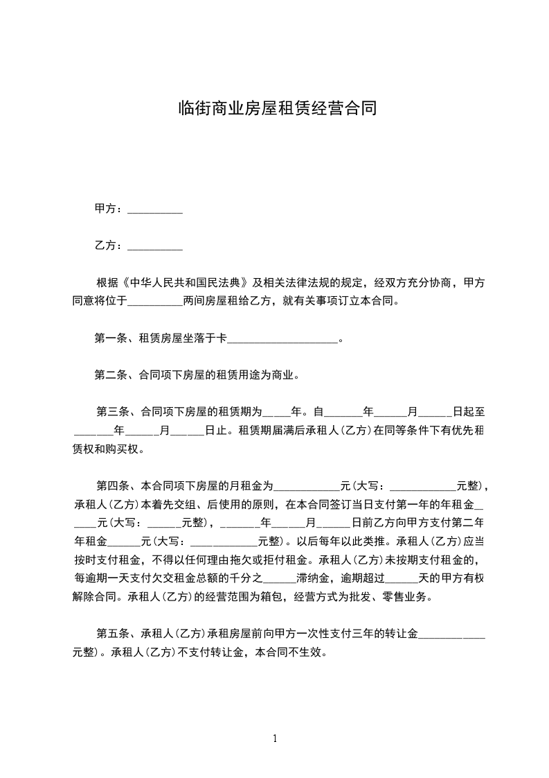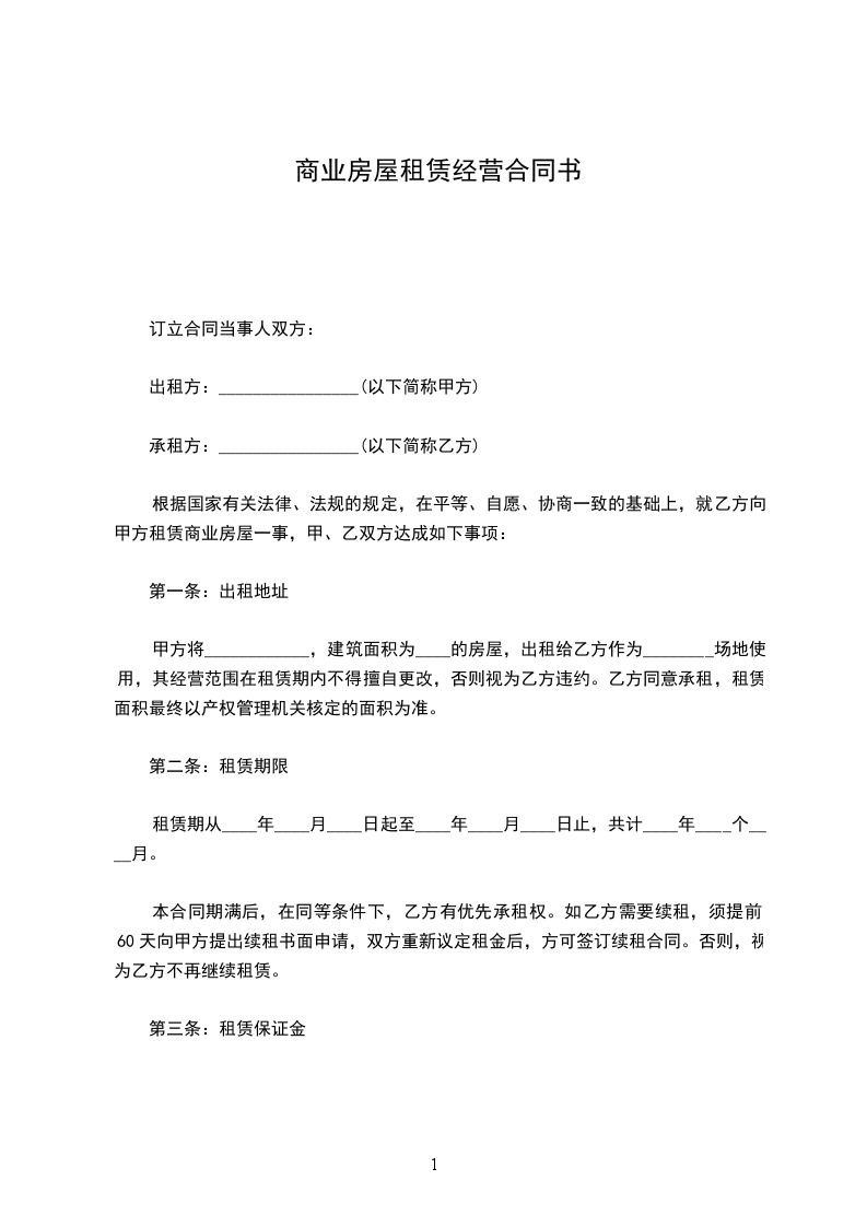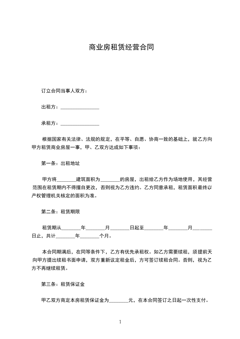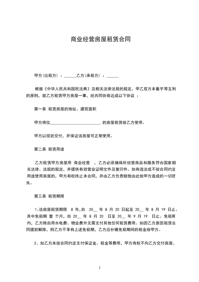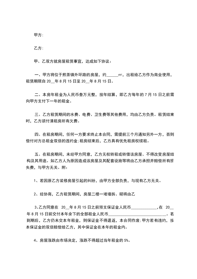 一、甲方将位于煎茶镇外环路的房屋,约______㎡,出租给乙方作为商业使用,租赁期限自20__年8月15日至20__年8月15日。
