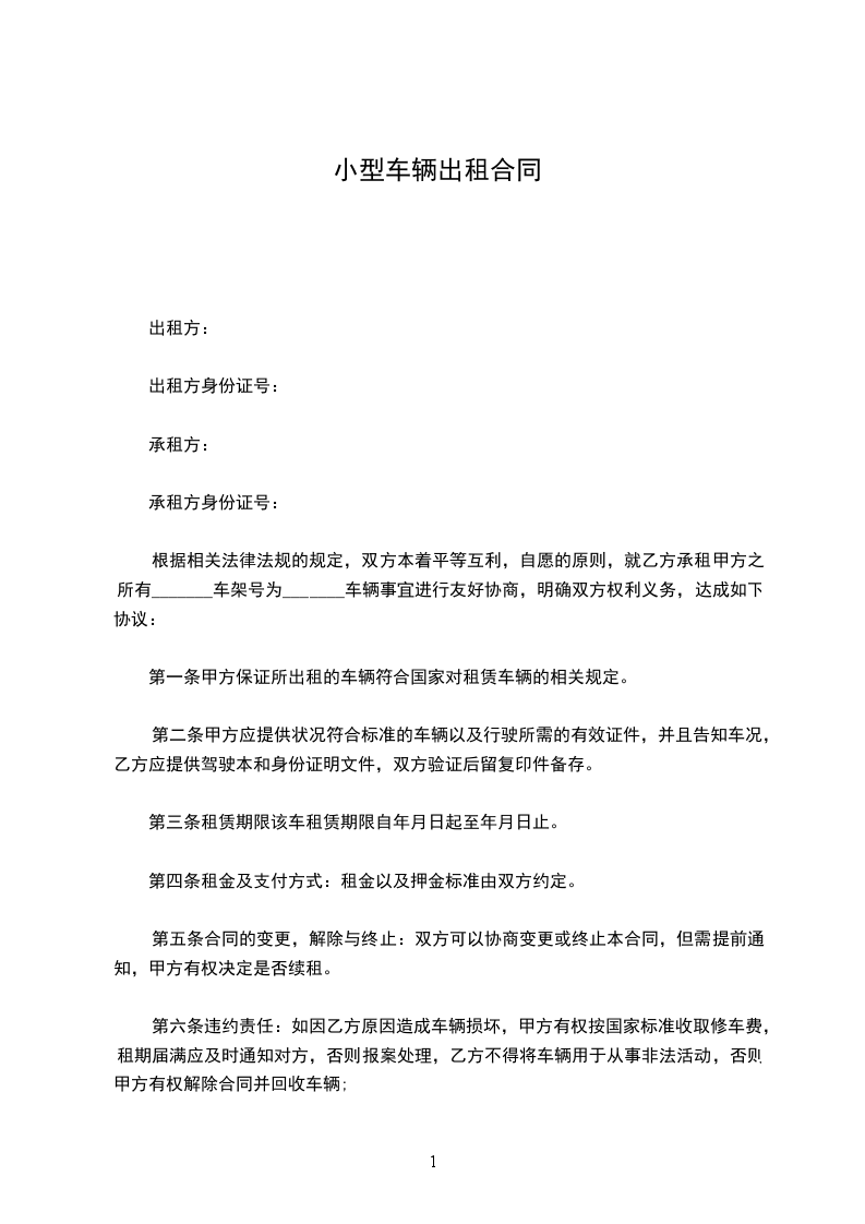 根据相关法律法规的规定,双方本着平等互利,自愿的原则,就乙方承租甲方之所有_______车架号为_______车辆事宜进行友好协商,明确双方权利义务,达成如下协议: