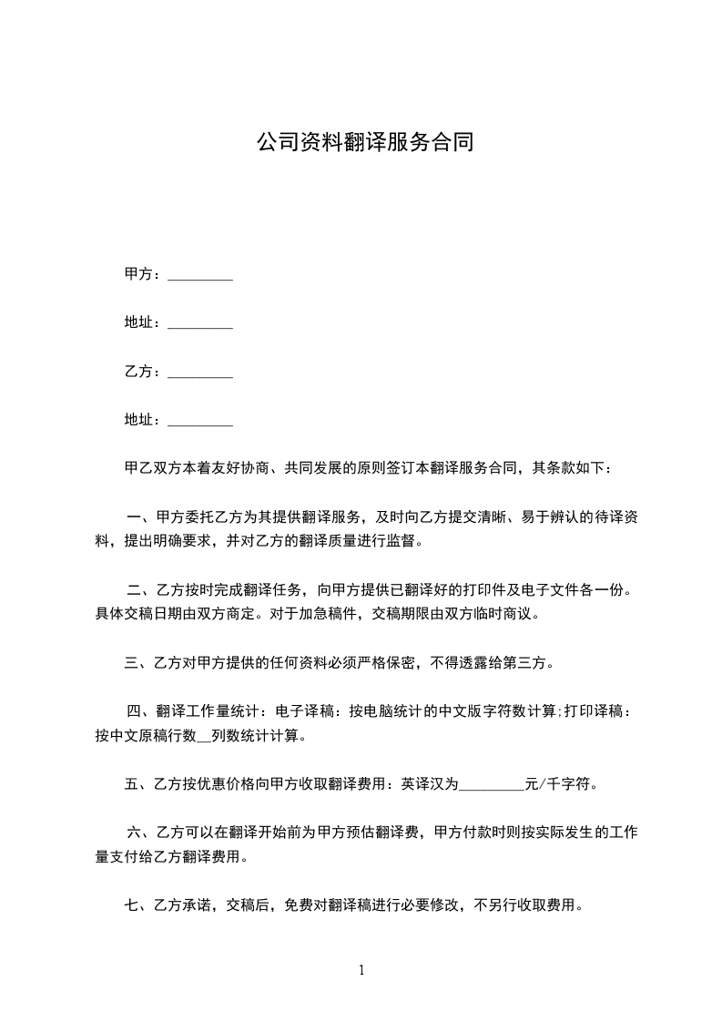 甲乙双方本着友好协商、共同发展的原则签订本翻译服务合同,其条款如下:
