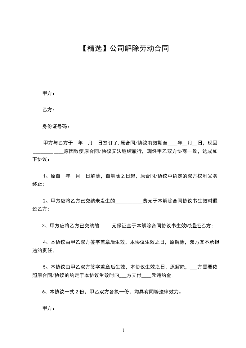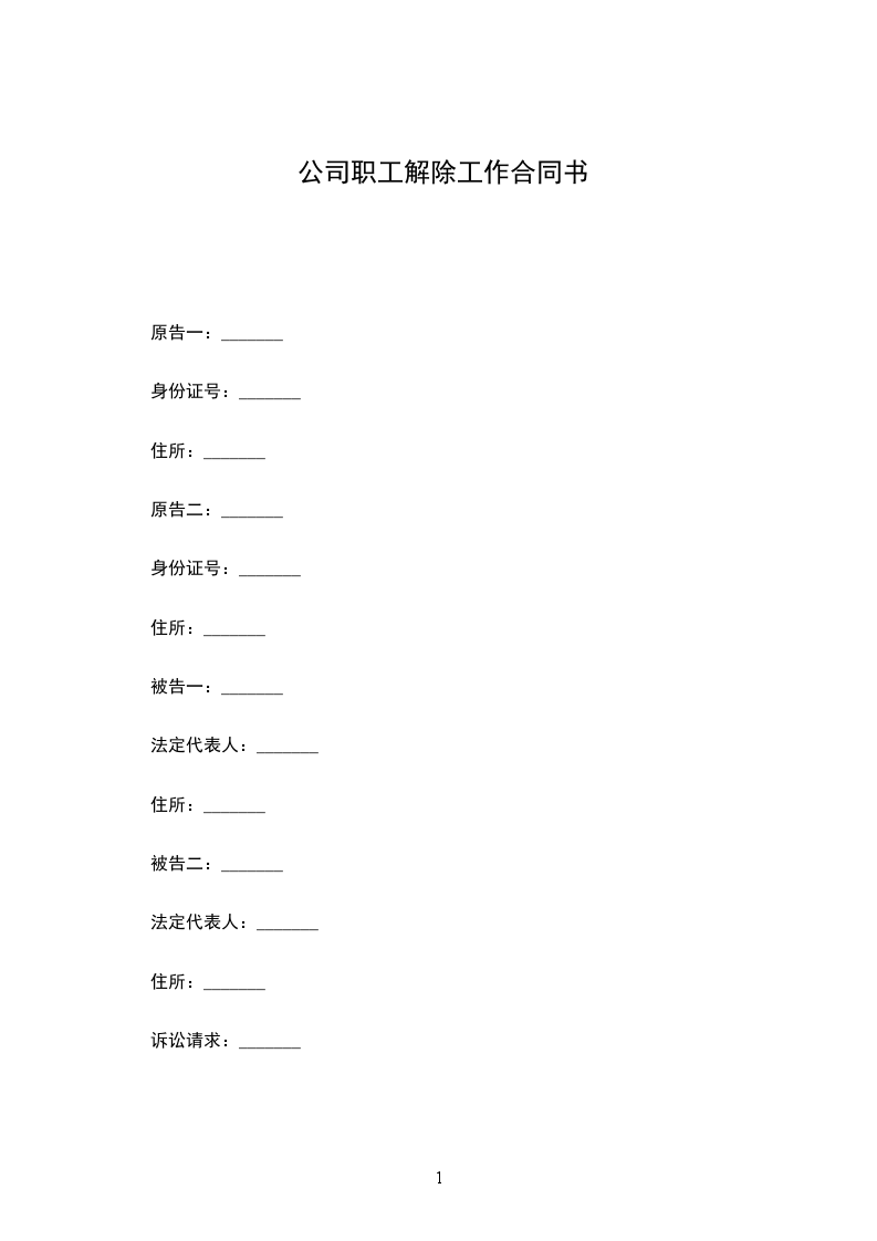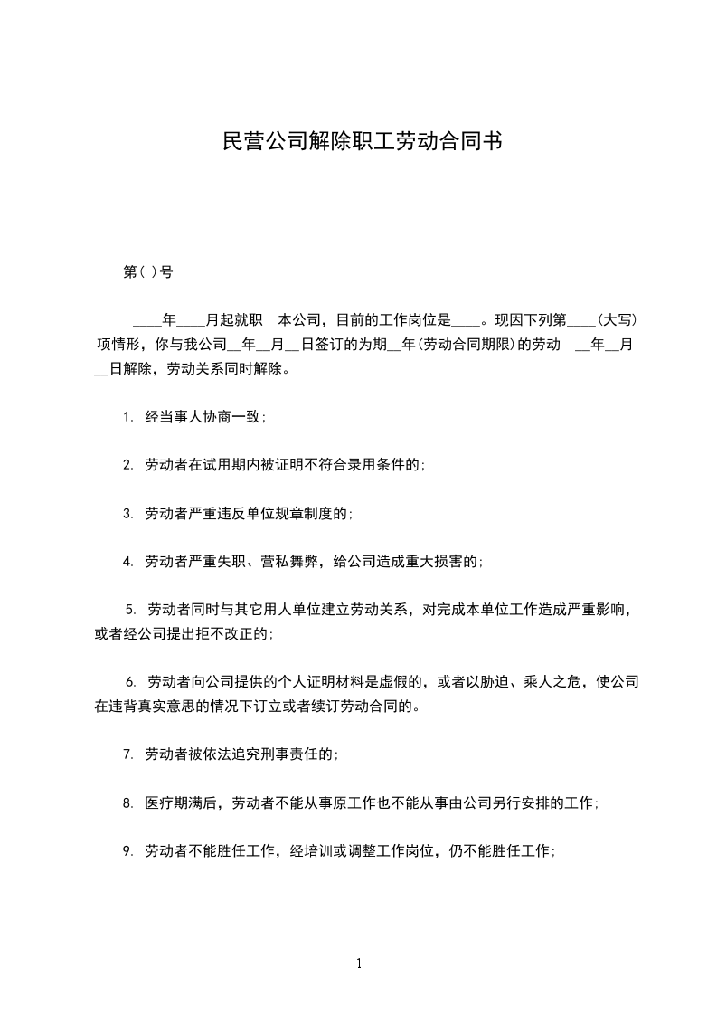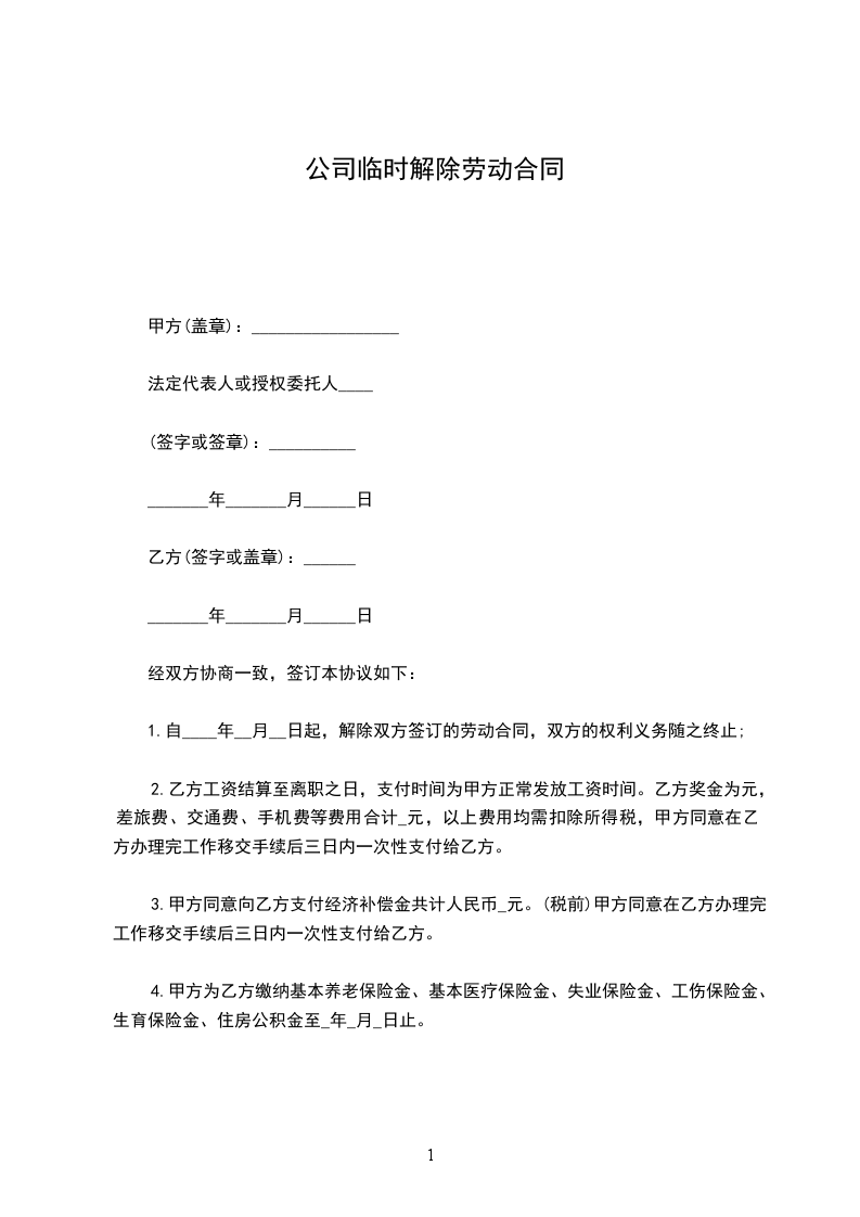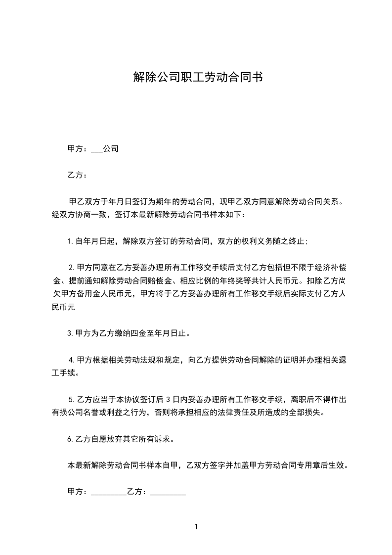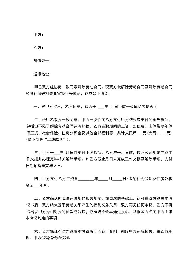 1.自_____年_____月_____日起,解除双方签订的劳动合同,双方的权利义务随之终止;