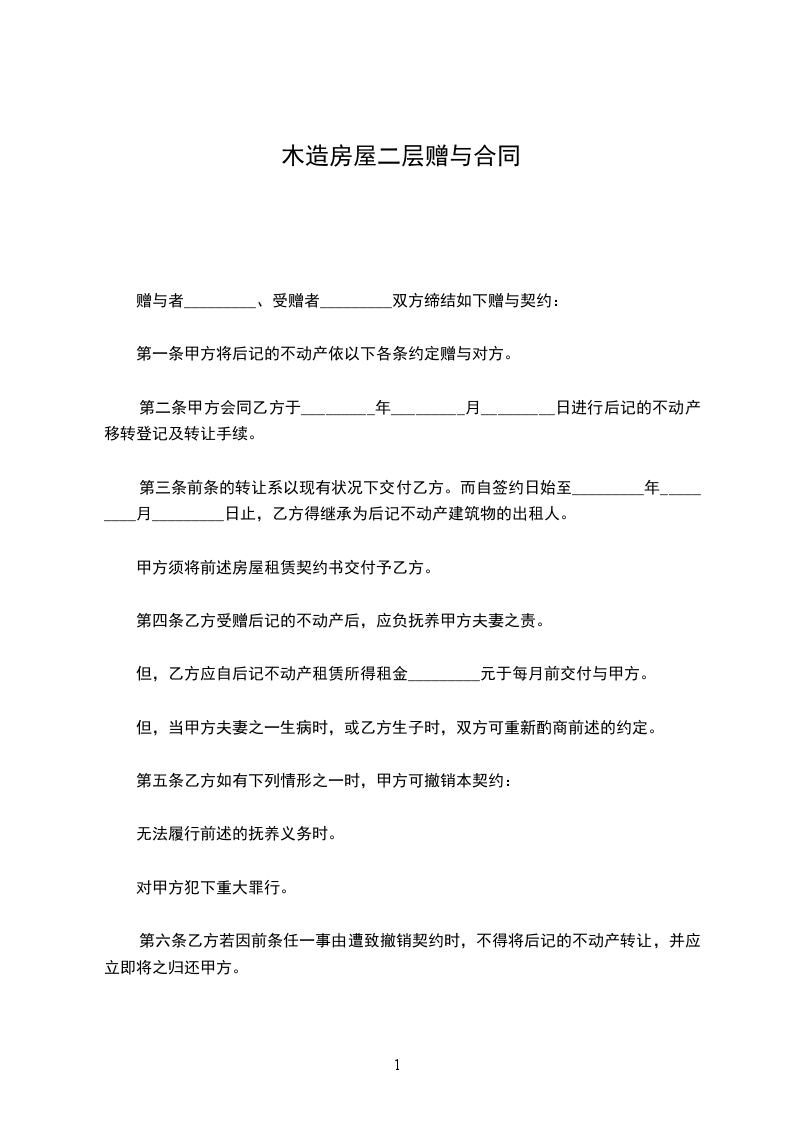 赠与者_________、受赠者_________双方缔结如下赠与契约: