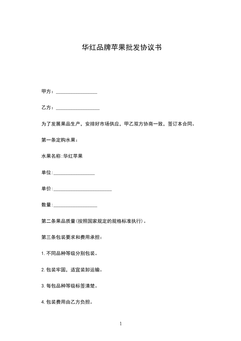 一、品种及数量:乙方愿将华红苹果约___________斤出售给甲方。
