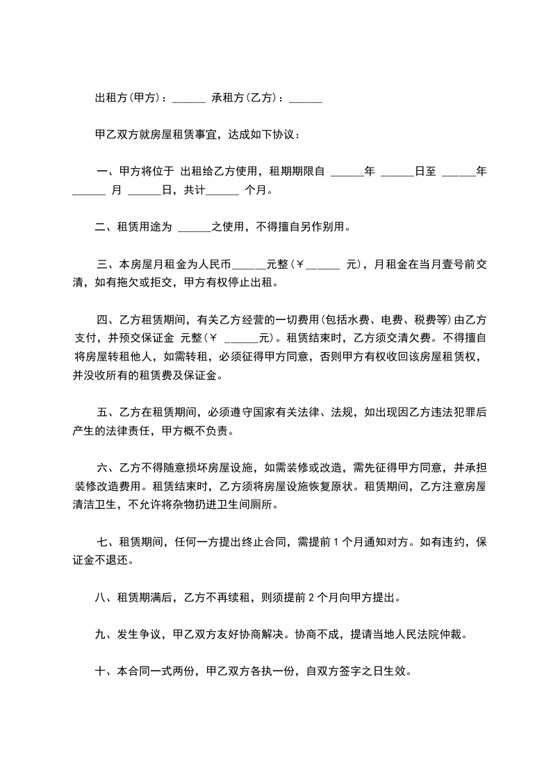 甲、乙双方依据中华人民共和国有关法律法规,在自愿、平等和互利的基础上,就___________房租赁事宜达成如下协议。
