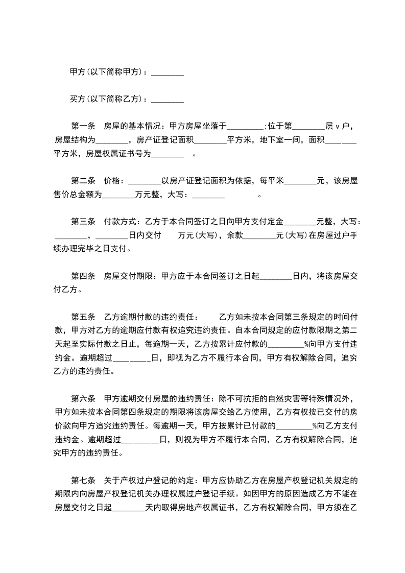 七、经甲乙双方协商一致,在甲方收到房屋全款人民币xx整(¥______元)后的______个工作日内将房屋腾空交给乙方,房屋交付给乙方后仍留在室内的物品则视为甲方放弃,乙方可任意处置。如甲方逾期交房,违约金按日计算为房款总额的万分之x(此条对买房有利)。丙方陪同甲乙双方自行处理此套房屋的物业交割手续。