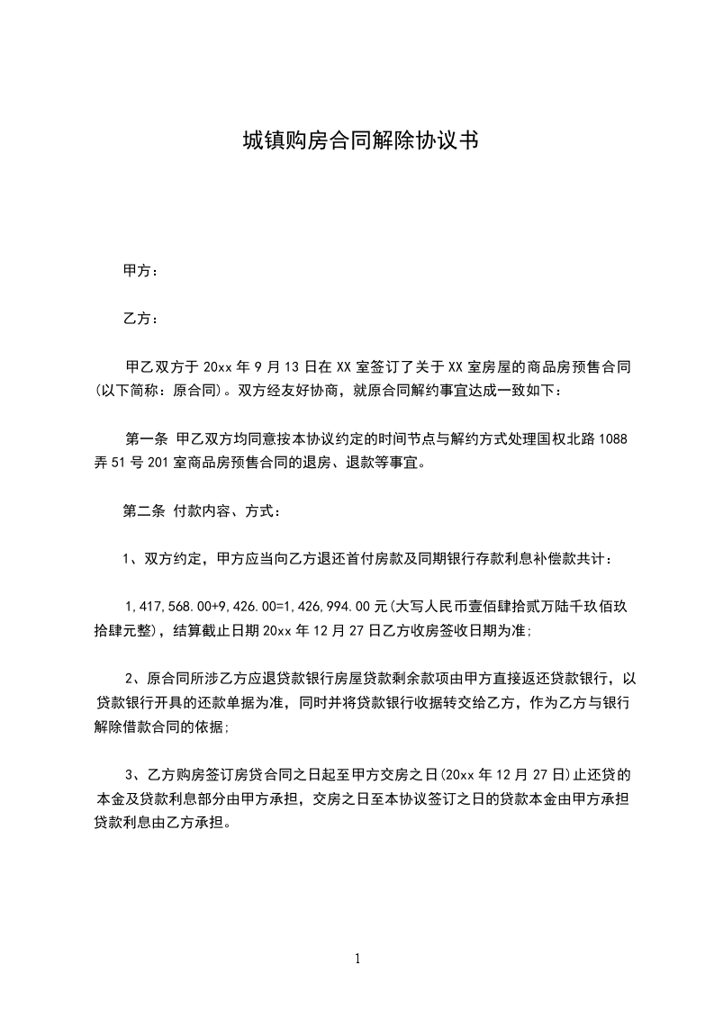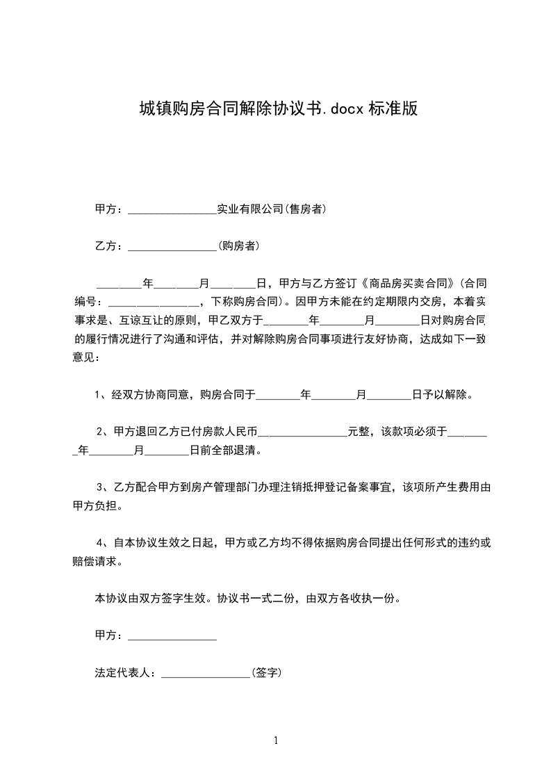经协商,双方愿意解除位于_________的租赁合同,并达成一致意见,为明确责任,保障双方合法权益,特签定本协议,条款如下:
