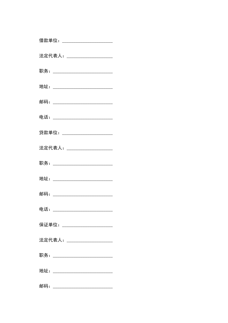 借款单位:________________________