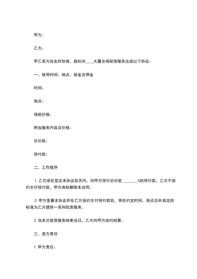 甲乙双方经友好协商,就杭州____大厦会场租赁服务达成以下协议: