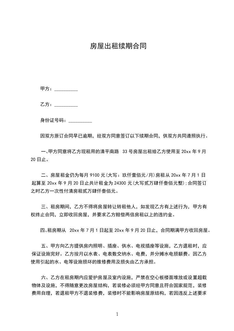 3、租赁期内,甲乙双方不得私自随意加减租金和更改终止合同租赁期。