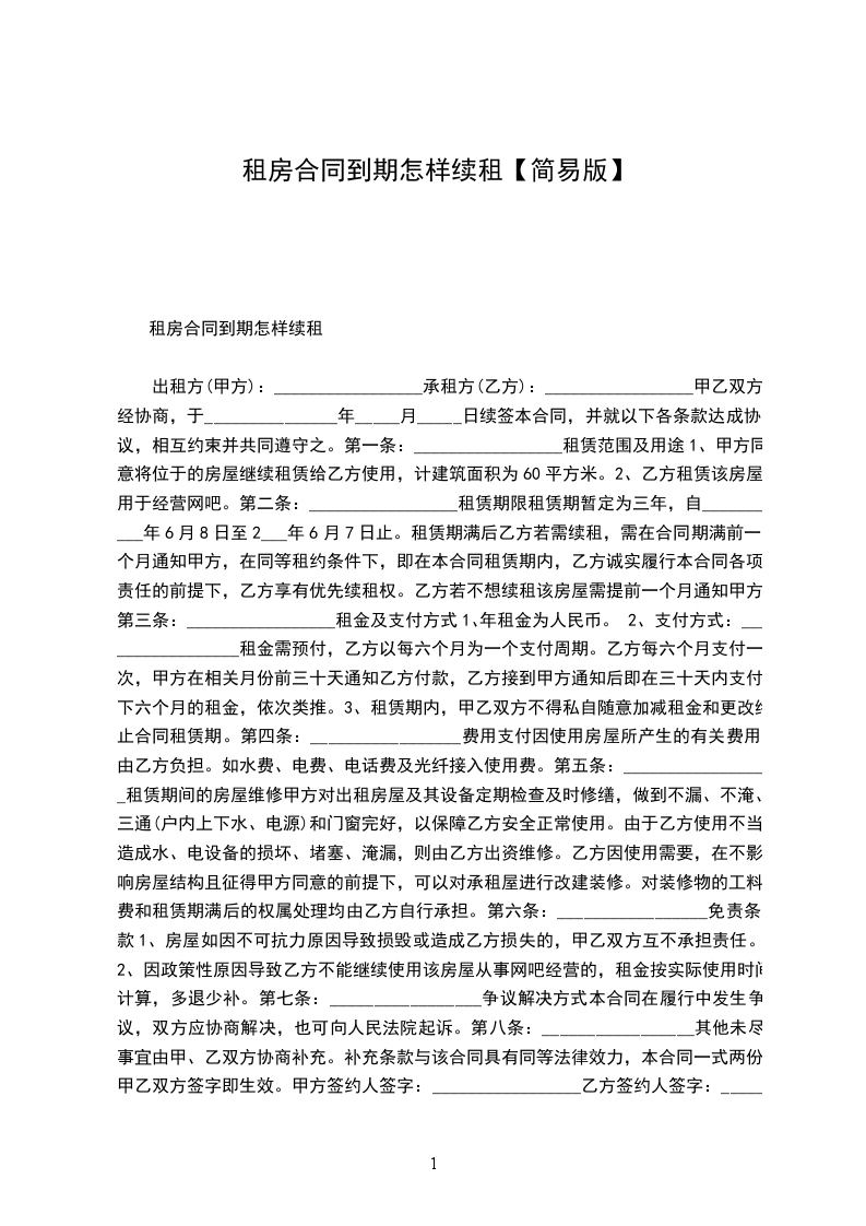 甲乙双方经协商,于_______年______月_____日续签本合同,并就以下各条款达成协议,相互约束并共同遵守之。