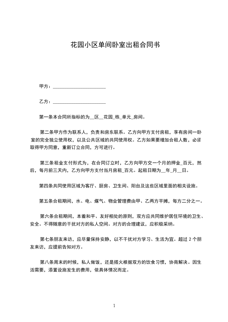 第二条甲方作为联系人,负责和房东联系。乙方向甲方支付房租,享有房间一卧室的完全独立使用权,以及公共区域的共同使用权。乙方如果要增加合租人数,必须取得甲方同意,重新订立合同,方可进行。