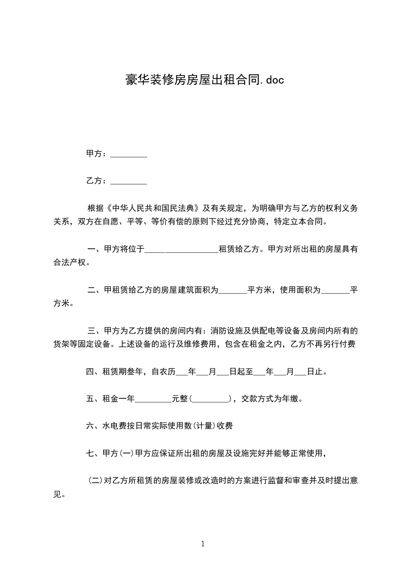 一、甲乙双方商定,甲方将___市___区___小区___栋___单元___楼___号一屋一厨门市,使用面积35平方米的房屋租给乙方使用,期限自____年__月__日至___年__月__日租用期限__月。