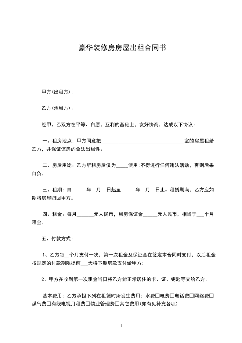 四、乙方交给甲方水、电、煤气、电话、房屋、等费用押金人民币___元,还房时,乙方不欠任何费用,甲方全部返还人民币___元,如欠费用则由乙方补充或在押金中扣除。
