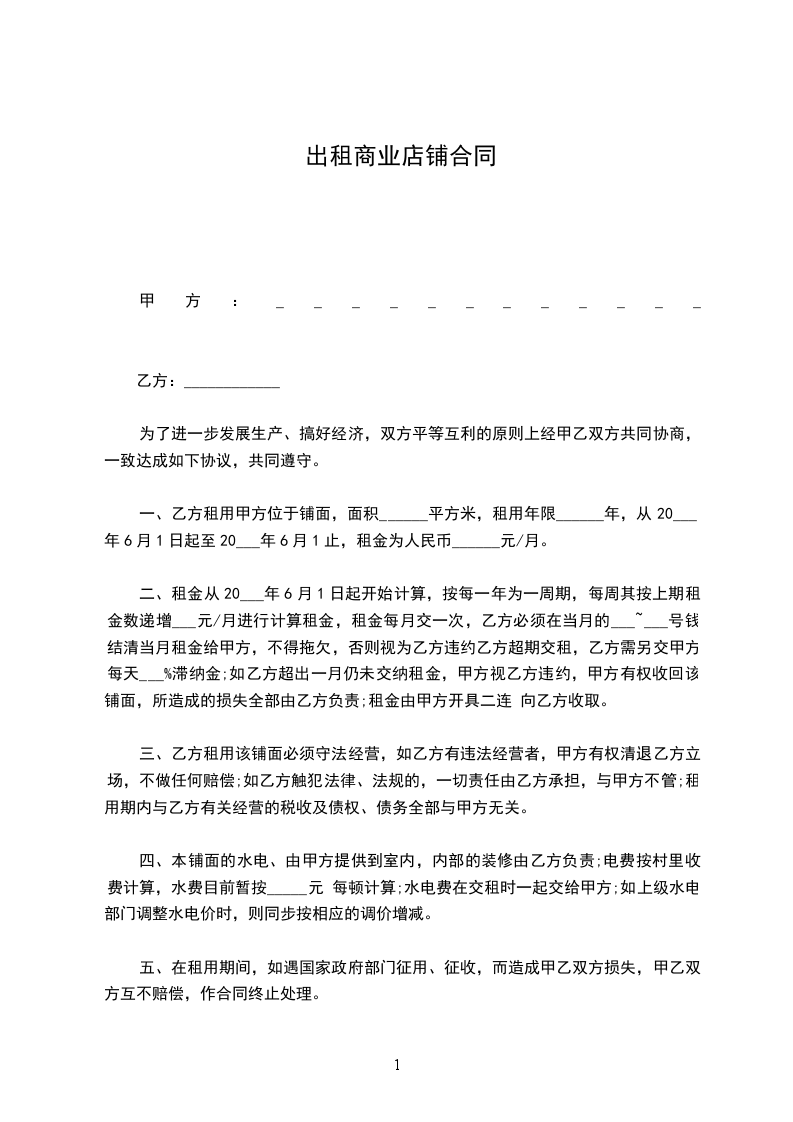 第七条遇国家征用店铺,有关赔偿归乙方。