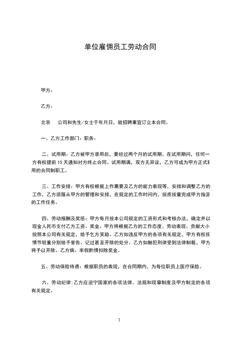 北京 公司和先生/女士于_____年_____月_____日,就招聘事宜订立本合同。